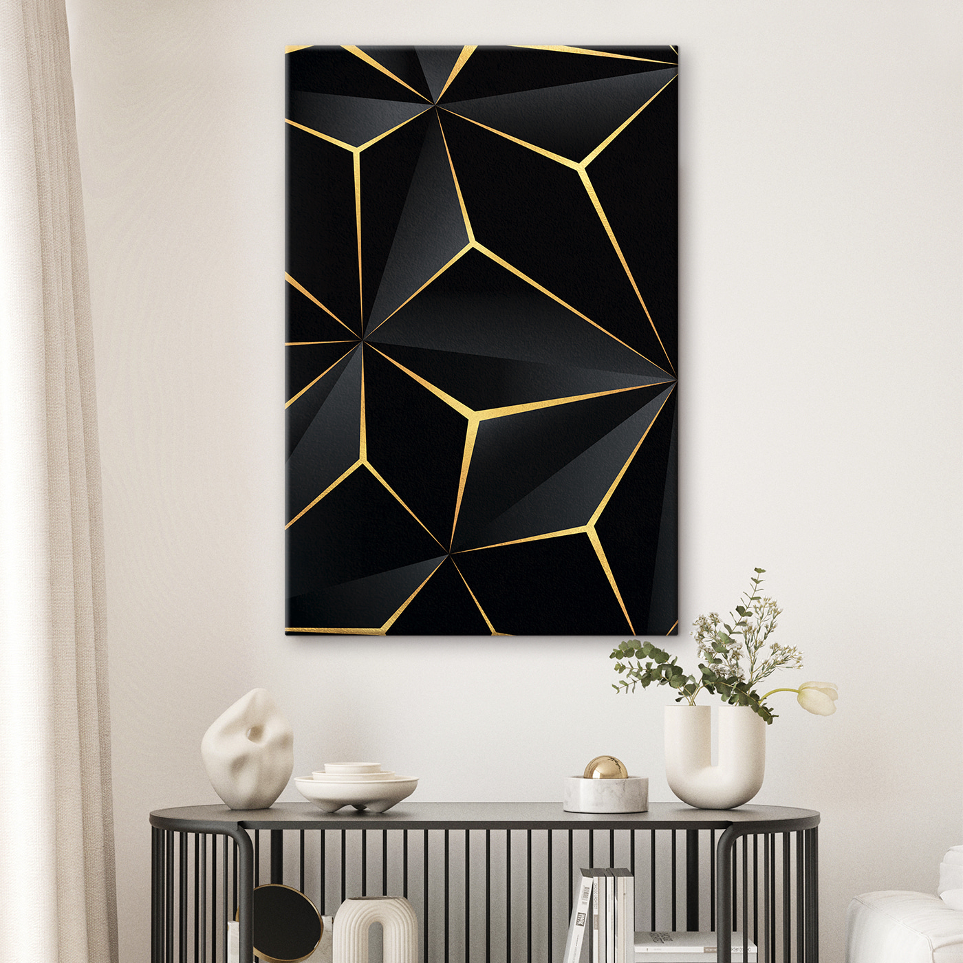 Dieser lebendige Leinwanddruck mit seinem auffälligen geometrischen Design in Schwarz und Metallic verwandelt jeden Raum. Es sorgt für Gesprächsstoff mit Winkeln und Formen, die über die Oberfläche tanzen und es für Gäste unmöglich machen, sie nicht zu bemerken. Stellen Sie sich vor, wie es sich anfühlt, wenn das Sonnenlicht das Design einfängt – es ist fast so, als hätte die Kunst eine eigene Persönlichkeit. Perfekt für ein schickes Wohnzimmer oder eine gemütliche Büroecke, verleiht dieses Stück Charakter, ohne nach Aufmerksamkeit zu schreien. Lassen Sie es ein wenig von Ihrem einzigartigen Stil und Ihrer Kreativität widerspiegeln. Kunst, die zu Neugier und Staunen einlädt.