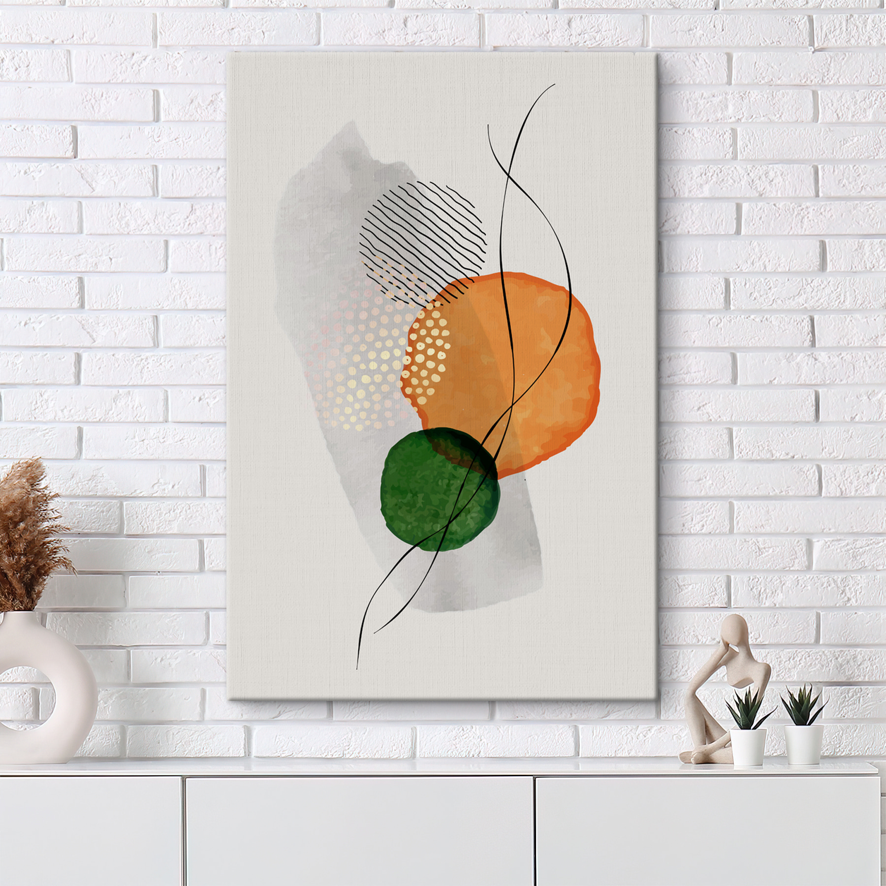 Verschönern Sie jeden Raum mit einem Hauch von künstlerischem Flair! Dieser Leinwanddruck zeigt einen lebendigen grünen Kreis mit auffälligen schwarzen Linien, der Ihrem Raum eine verspielte Note verleiht. Es ist, als ob Sie sich ein kleines Stück einer Galerie nach Hause holen. Stellen Sie es sich über einer gemütlichen Couch oder in einem luftigen Büro vor – ein echter Blickfang. Die Mischung aus Farben und Formen sorgt für eine moderne Ausstrahlung, die zu Gesprächen anregt oder Sie einfach zum Lächeln bringt, wenn Sie vorbeigehen. Perfekt für alle, die einen Hauch von Skurrilität in ihrer Einrichtung schätzen, ohne zu übertreiben. Genau das richtige Maß an Spaß!