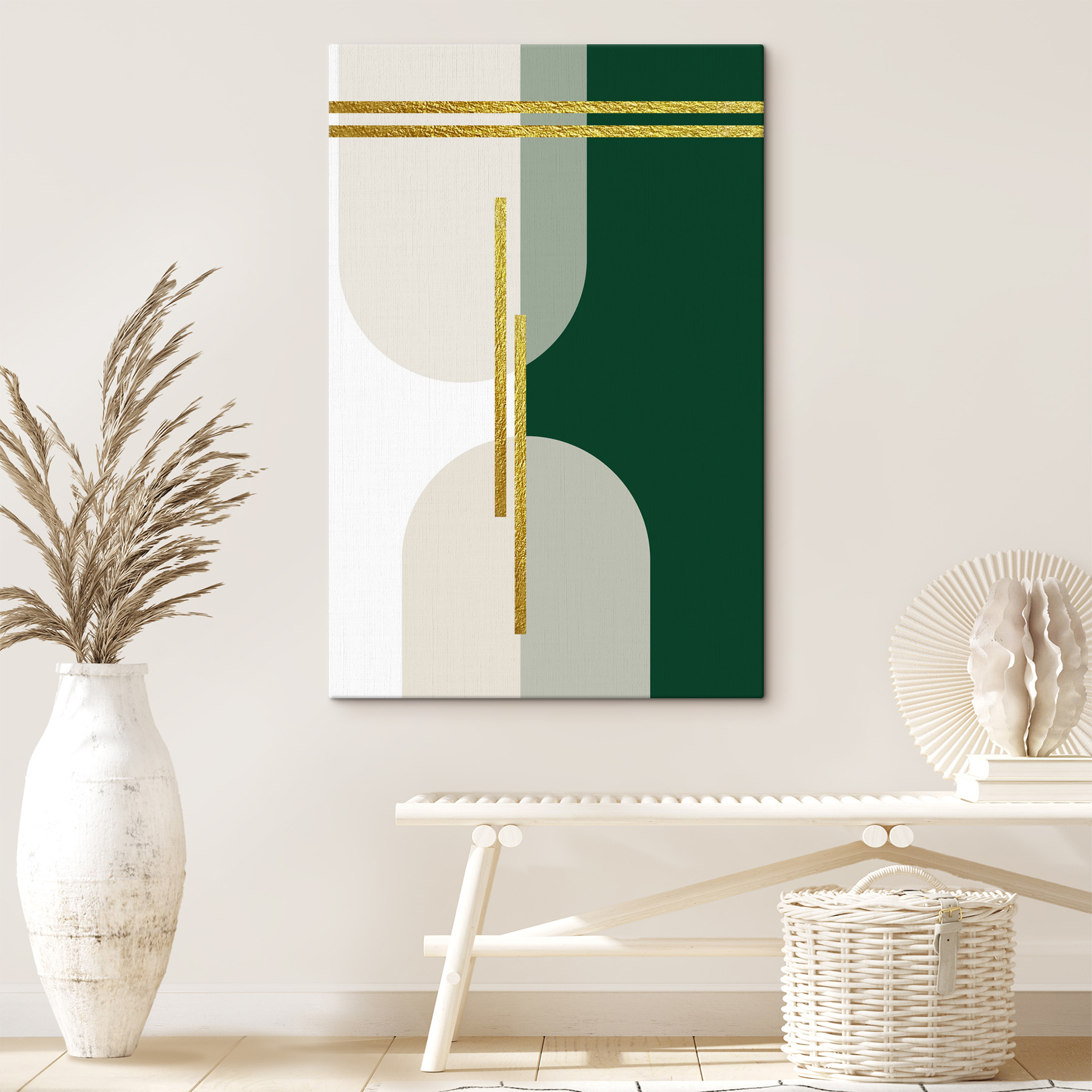 Verschönern Sie Ihren Raum mit diesem Leinwanddruck “Elegante Linien in modernen Farbtönen”. Stellen Sie sich vor, wie diese sanften Grün- und Cremetöne miteinander spielen und Ruhe ausstrahlen, ohne ein Wort zu sagen. Die eleganten Linien verleihen dem Bild einen Hauch von Raffinesse und machen es perfekt für ein gemütliches Loft oder eine minimalistische Ecke. Er ist wie ein Freund, der sich mühelos in jede Runde einfügt – immer stilvoll und doch zugänglich. Ob über einem schlichten Sofa oder in einem Arbeitsbereich, sie zieht Komplimente an, ohne sich zu sehr aufzudrängen. Perfekt, um dem Raum Persönlichkeit zu verleihen, ohne ihn zu überwältigen. Ein wenig Kunst kann die Stimmung wirklich aufhellen, finden Sie nicht auch?