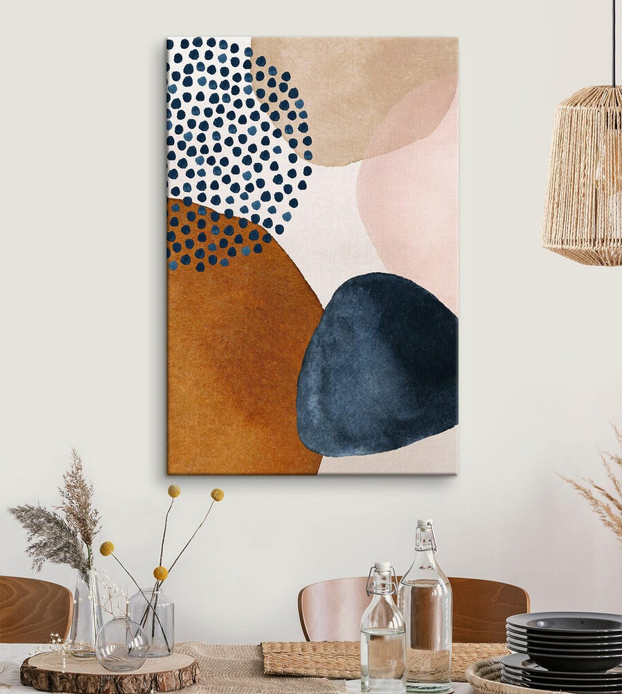Haben Sie jemals das Gefühl, dass Ihre Wände ein bisschen, ich weiß nicht, etwas brauchen? Dieser Leinwanddruck könnte genau das Richtige sein. “Abstrakte Formen und Punkte” klingt doch schick, oder? Es hat diesen chilligen Boho-Style mit einem Hauch von modernem Loft-Charme. Perfekt für diese gemütlichen Ecken oder vielleicht sogar über der Couch – wo auch immer!