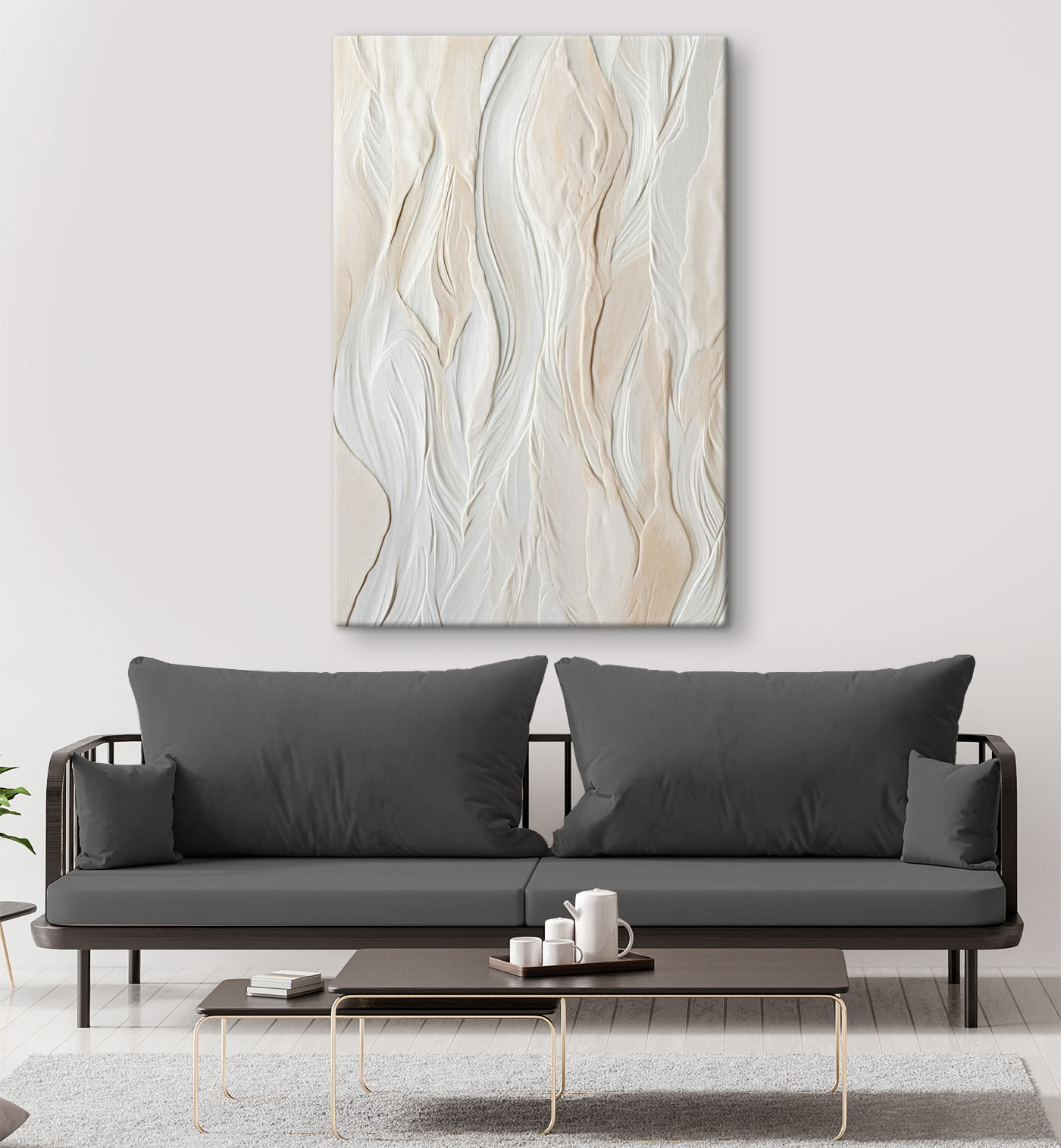 Dieser atemberaubende Leinwanddruck mit seinen wellenförmigen Linien, die wie eine sanfte Brise fließen, verleiht jedem Raum ein neues Gesicht. Es ist wie ein ruhiger Ozean an einem hellen Tag – perfekt, um eine heitere Stimmung zu erzeugen. Stellen Sie sich vor, Sie betreten Ihren Raum und spüren sofort, wie eine sanfte Welle der Ruhe über Sie hereinbricht. Die neutralen Töne lassen sich wunderbar kombinieren, so dass sie sowohl über einem gemütlichen Sofa als auch in einem hellen Flur gut zur Geltung kommen. Es ist die Art von Kunstwerk, die zu Gesprächen einlädt und die Gäste dazu bringt, sich über die Inspiration des Künstlers Gedanken zu machen. Ein echter Blickfang mit einer Atmosphäre, mit der es sich gut leben lässt!