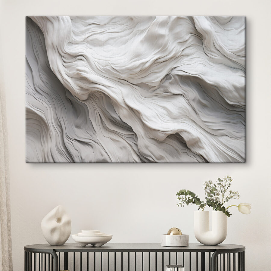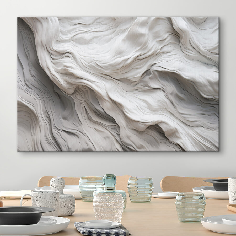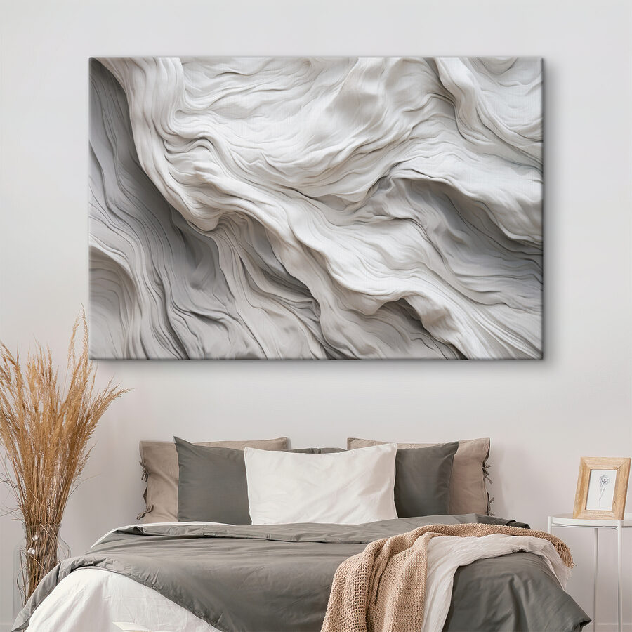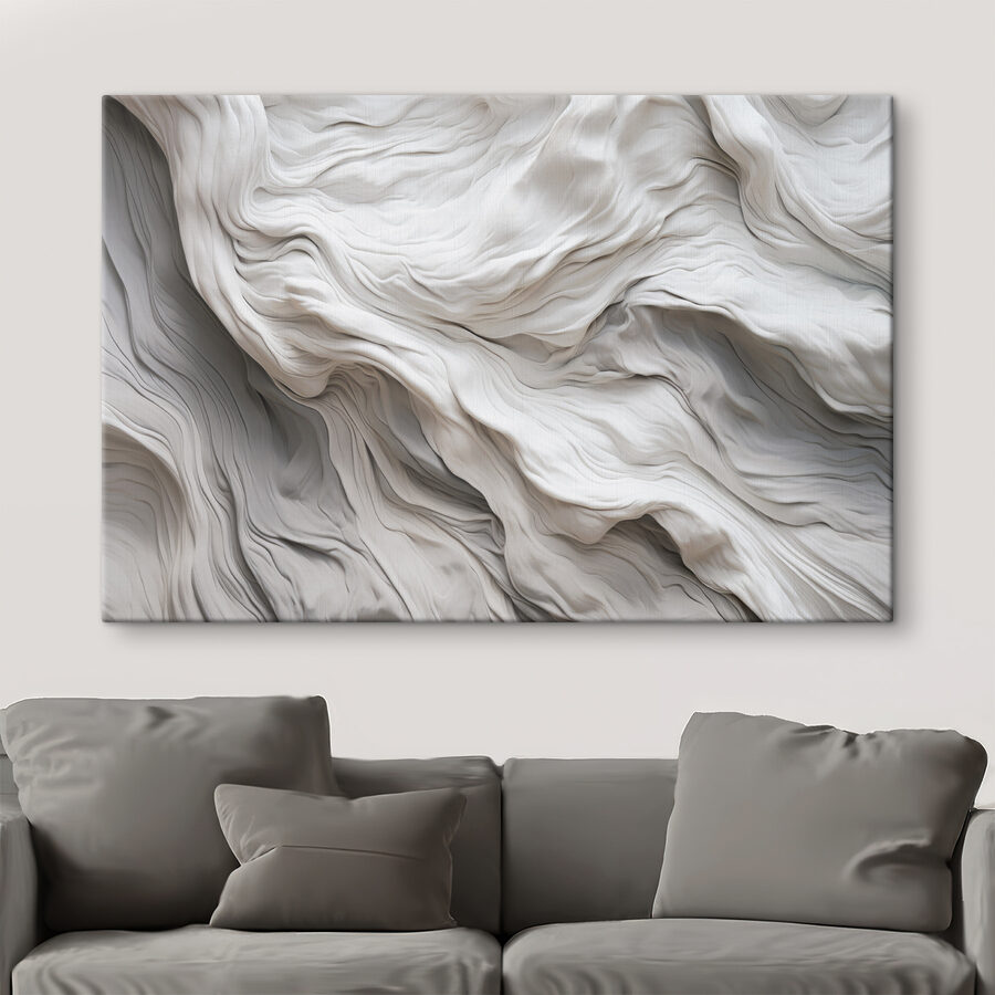 Dieses fließende, stoffähnliche, abstrakte Muster strahlt eine Atmosphäre aus, die sowohl gemütlich als auch anspruchsvoll ist. Stellen Sie sich vor, Sie betreten einen Raum und werden von seinen weichen Wellen und sanften Kurven begrüßt – es ist fast wie eine Umarmung für Ihre Wände. Perfekt, um eine triste Ecke aufzuhellen oder einen Hauch von Faszination über der perfekt platzierten Couch zu erzeugen.