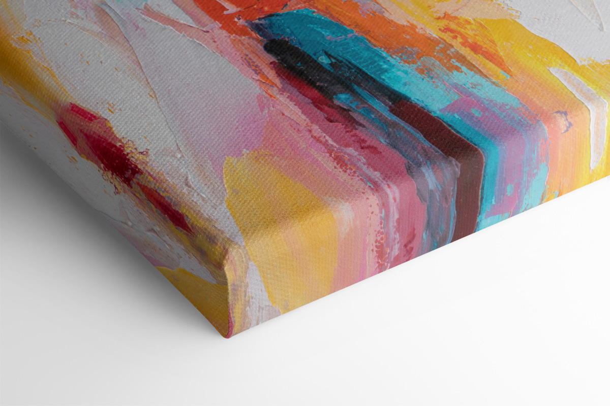 Perfekt für ein Wohnzimmer, das einen zusätzlichen Wow-Faktor braucht, oder für ein Schlafzimmer, das einen Hauch von Kühnheit braucht. Und hey, hat es nicht etwas Zeitloses an sich? Die Art und Weise, wie die Farben über die Leinwand tanzen, verleiht ihm eine fast träumerische, aber dennoch kraftvolle Präsenz.