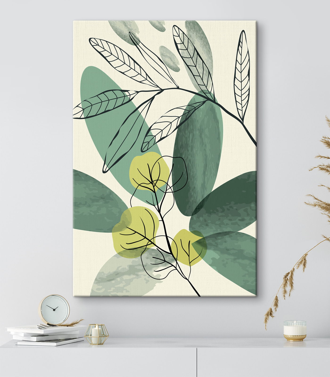 Haben Sie schon einmal einen Raum betreten und das Gefühl gehabt, Zen zu sein? Genau das passiert mit diesem Leinwanddruck “Stilisierte Blätter mit abstrakten Formen”. Stellen Sie sich vor, Sie könnten diese Schönheit an Ihre Wand hängen – ein echter Blickfang. Die Blätter und abstrakten Formen in beruhigenden Grüntönen wirken wie eine visuelle Umarmung. Das Bild gehört außerdem zu mehreren lustigen Kategorien – Boho, Blumen, Populär und Aquarellkunst. Als ob sich der Designer nicht entscheiden konnte, wie er es nennen sollte, hat er ihm die ganze Liebe gegeben!