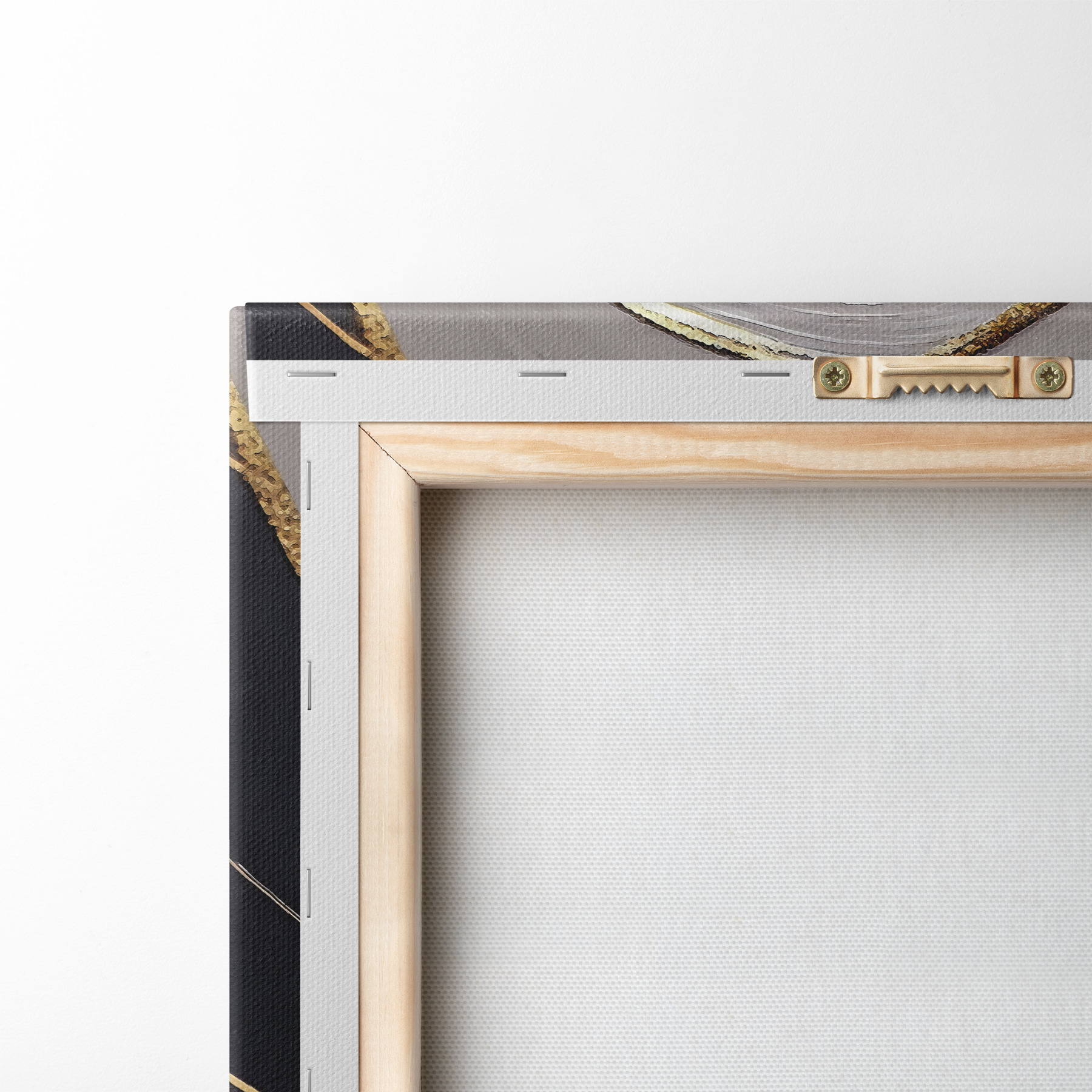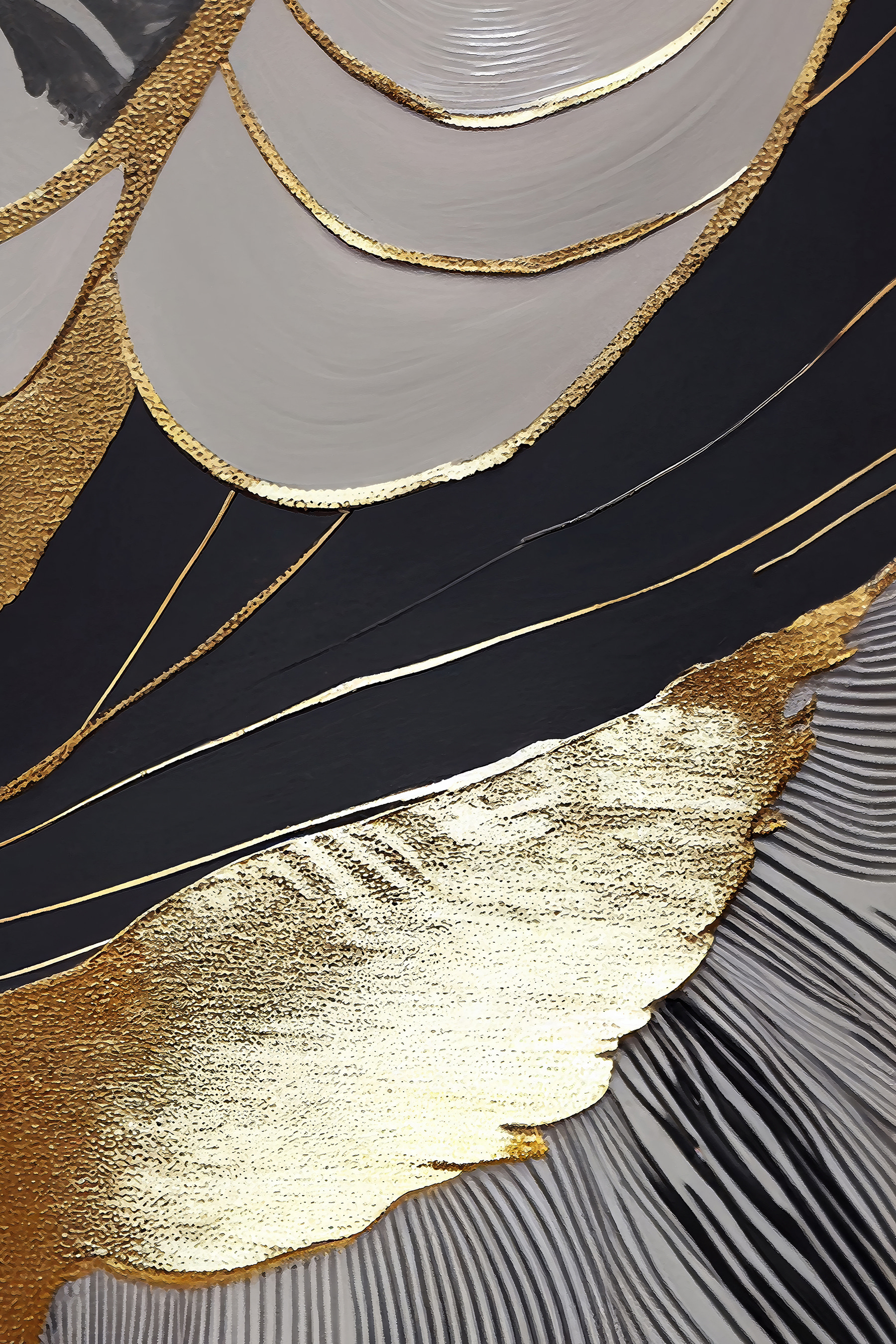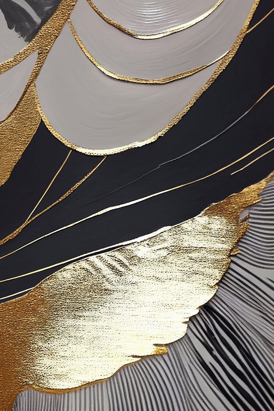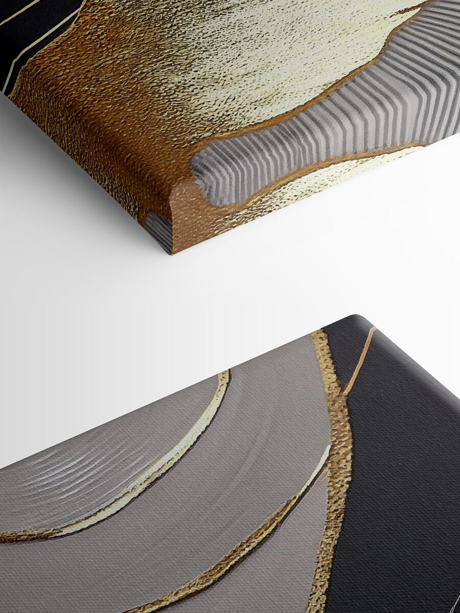 Verändern Sie Ihren Raum mit diesem fesselnden Leinwanddruck mit abstrakten schwarzen und metallischen Mustern. Es ist, als ob Sie sich ein modernes Kunstwerk in Ihr Wohnzimmer holen würden – ganz ohne aufwendige Galeriebesuche. Stellen Sie sich vor, wie dieses auffällige Kunstwerk Ihren Lieblingsraum schmückt und bei zwanglosen Zusammenkünften zu interessanten Gesprächen anregt. Das kühne Design zieht die Blicke auf sich und fügt sich nahtlos in verschiedene Einrichtungsstile ein – egal ob gemütlich oder schick. Stellen Sie sich einen ruhigen Abend vor, nur Sie und die hypnotisierenden Muster, die sich in Gedanken verlieren. Es ist Kunst, die sich lebendig anfühlt und jeden Blick zu einem kleinen Moment der Freude macht.