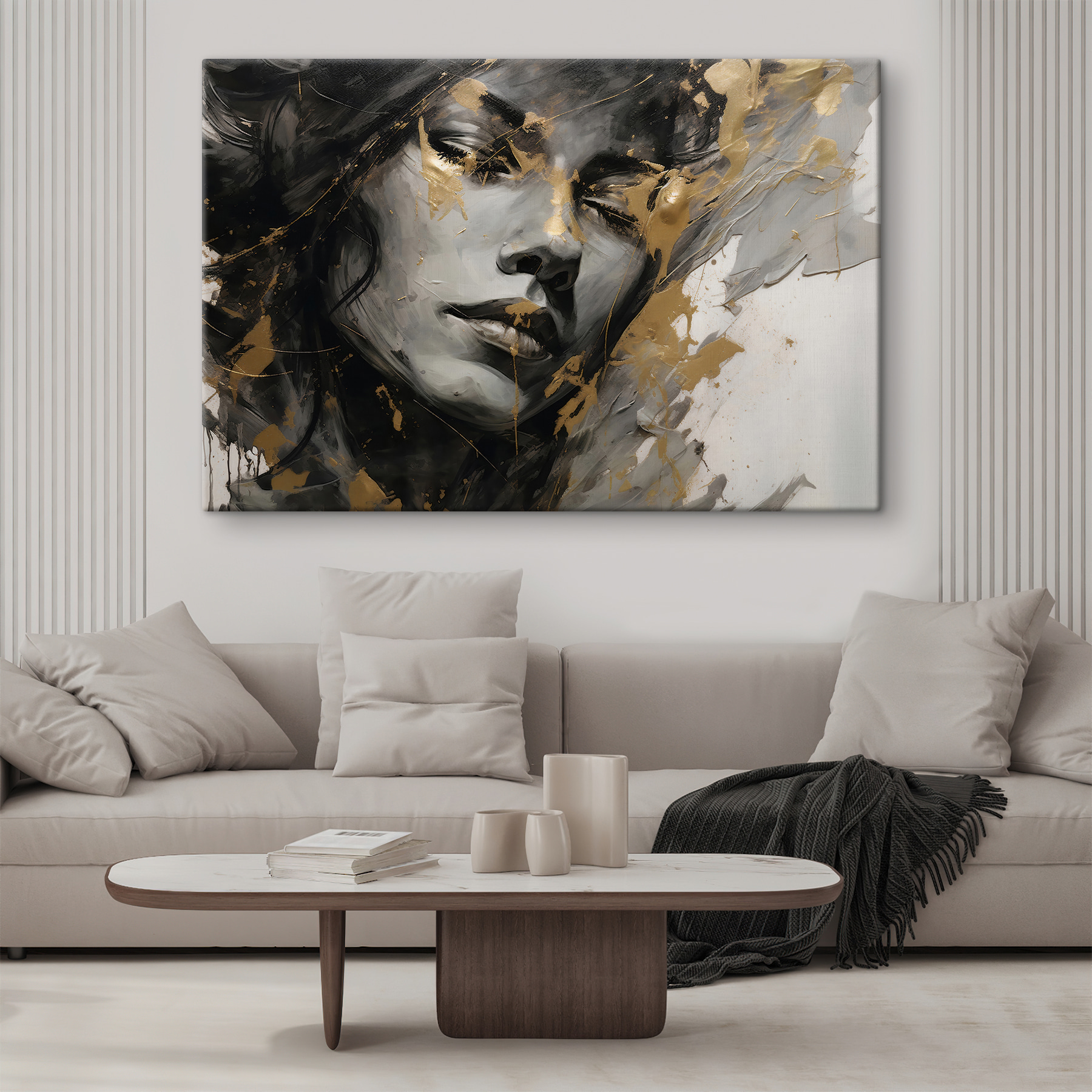 Tauchen Sie ein in die ergreifende Schönheit von “Whispers in Artistic Shattered Silence”. Dieser Leinwanddruck hängt nicht einfach nur an der Wand, er flüstert Geschichten und Emotionen, jeder Pinselstrich lockt Sie näher heran. Stellen Sie sich vor, Sie gehen daran vorbei und spüren einen Sog, einen Drang zum Innehalten. Der Kontrast der tiefen Töne erzeugt eine faszinierende Stimmung, während das Gesicht sanft vor sich hinblickt, gefangen in einem Moment der stillen Reflexion. Es ist perfekt, um einem Wohnzimmer oder vielleicht sogar einer gemütlichen Leseecke einen Hauch von Nachdenklichkeit zu verleihen. Vielleicht ertappt man sich beim Träumen oder regt Gespräche mit Freunden an. Dieses Stück lädt eine sanfte Art von Magie in jeden Raum ein – es könnte das Gesprächsthema Ihrer nächsten Zusammenkunft sein.