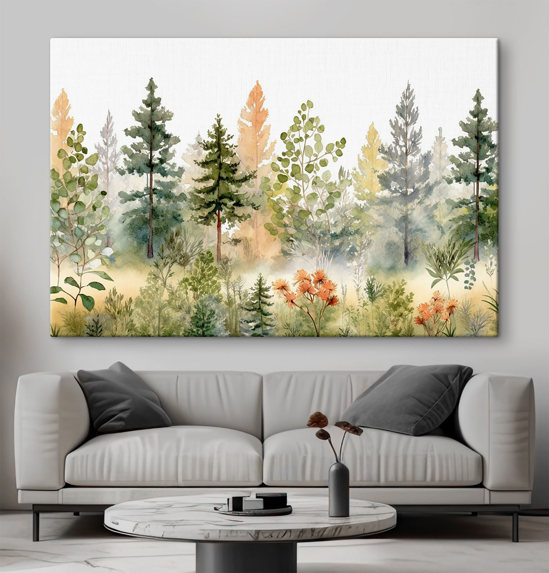 Verwandeln Sie Ihren Raum mit diesem hübschen Aquarellbild, das eine heitere Mischung aus Bäumen und Pflanzen zeigt. Es ist wie ein sanfter Spaziergang durch einen friedlichen Wald, nur ohne die Mücken. Die sanften Grüntöne und warmen Erdtöne harmonieren wunderbar und bringen ein Gefühl von Ruhe und Natur in Ihr Zuhause. Stellen Sie sich vor, Sie trinken einen Kaffee in Ihrer gemütlichen Ecke und fühlen sich wie im Freien, ohne jemals nach draußen zu gehen – perfekt für Träumer und Naturliebhaber gleichermaßen. Dieses Stück bringt einen Hauch von Ruhe in jeden Raum und ist ein wunderbarer Gesprächsanlass oder eine einfache Möglichkeit, Ihre Stimmung an hektischen Tagen zu verbessern. Würden Sie sich beim Betrachten dieses Bildes nicht auch entspannter fühlen? Geben Sie Ihren Wänden eine Umarmung aus Grün und lassen Sie die Magie sich entfalten!