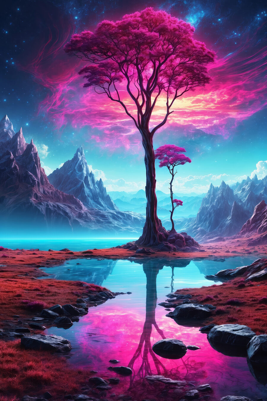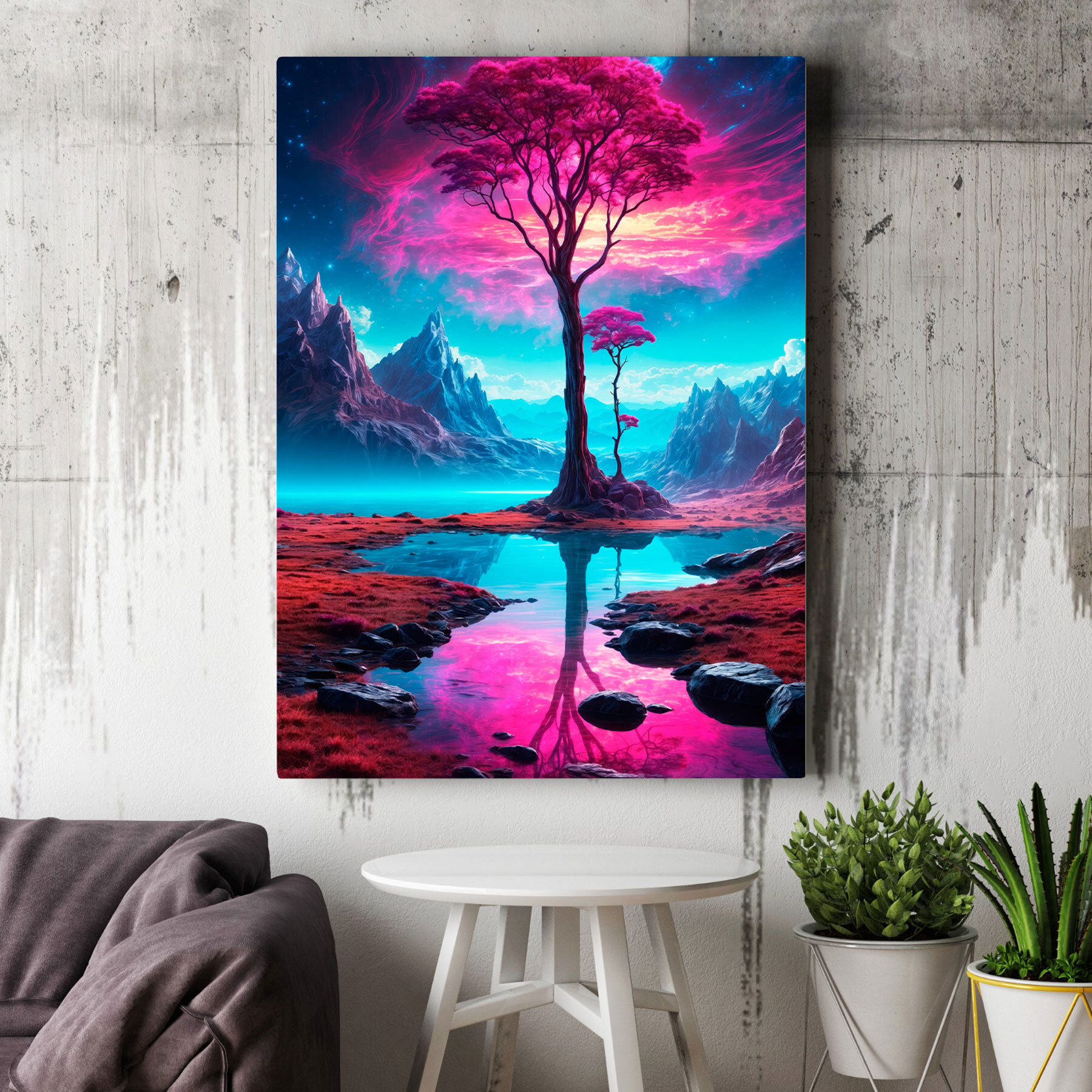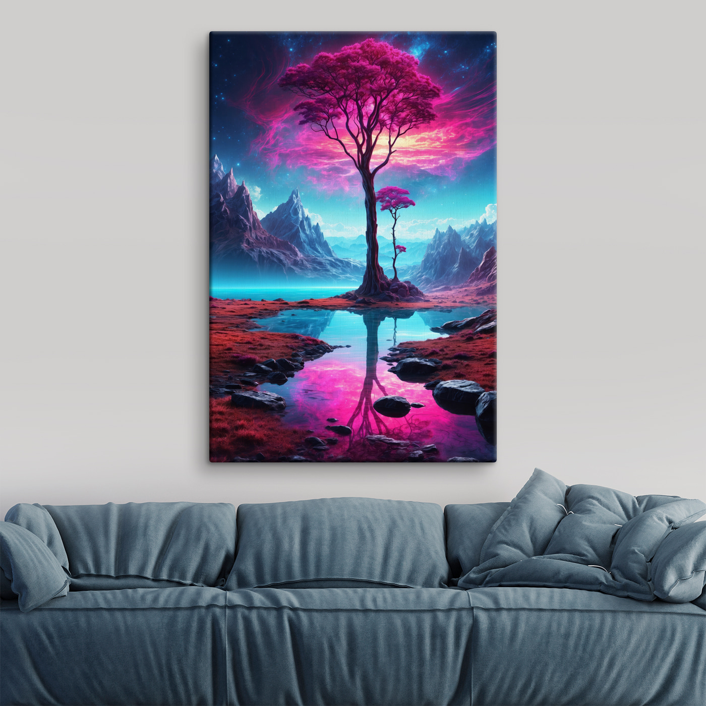 Dieser atemberaubende Leinwanddruck “Tree with a Pink Flower Growing on It” ist pure Magie für Ihre Wände. Es ist, als würde man in einen Traum eintauchen, oder? Sie haben diesen majestätischen Baum mit leuchtend rosa Blüten – es ist fast so, als könnten Sie die Süße in der Luft riechen. Stellen Sie sich vor, dass dieses Bild in Ihrem Wohnzimmer hängt; jedes Mal, wenn Sie hinüberschauen, werden Sie in diese skurrile, weltfremde Landschaft versetzt. Die leuchtenden Farben und die ruhige Szene verleihen Ihrem Raum einen Hauch von Natur und eine Dosis Ruhe. Perfekt für alle, die einen Hauch von lebendiger Schönheit mit der Ruhe der Natur verbinden möchten. Außerdem ist es so faszinierend, dass Ihre Gäste immer wieder fragen werden, woher Sie es haben. Es ist mehr als nur Wandkunst – es ist ein Erlebnis.