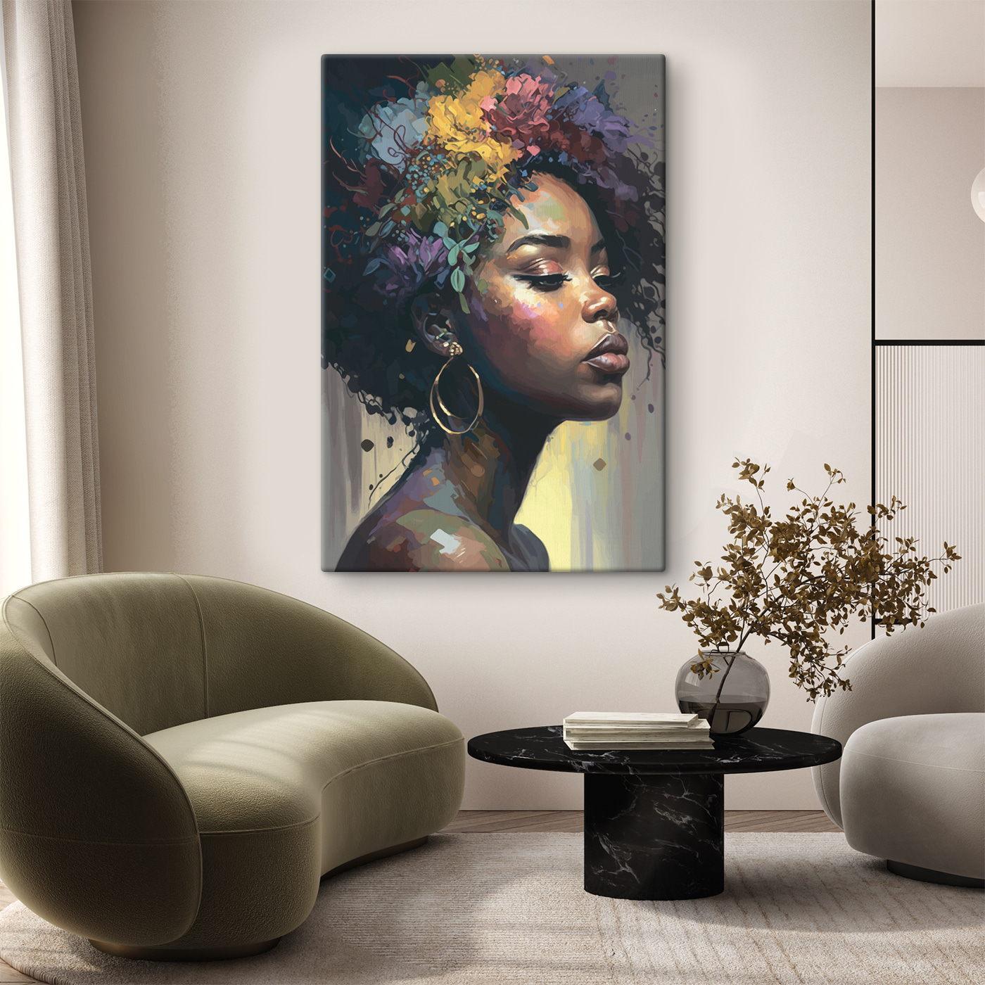 Ist dieses “Vibrant Blossoms Crown Serene Portrait” nicht ein echter Hingucker? Stellen Sie sich vor, wie dieses bezaubernde Leinwandbild Ihre Wohnzimmerwand schmückt – es ist eine tägliche Augenweide mit Haltung. Diese pulsierenden Blüten sind nicht einfach nur Blumen, sie sind ein Hauch von Poesie der Natur, die auf diesem ruhigen und gelassenen Gesicht sitzen und der üblichen eintönigen Einrichtung trotzen.