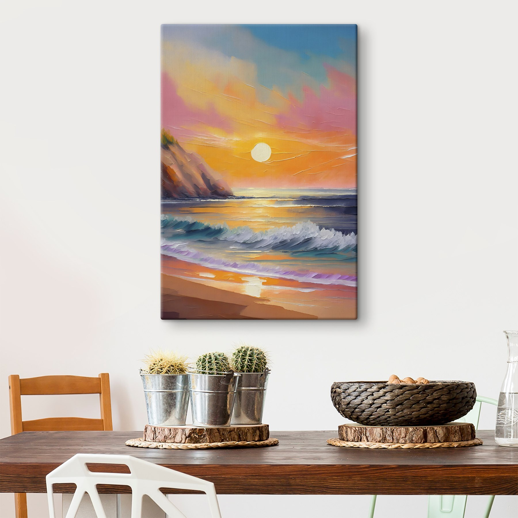 Stellen Sie sich vor: Sie lassen sich in Ihren Lieblingssessel sinken, nippen an einer warmen Tasse Kaffee und vor Ihnen hängt eine atemberaubende Leinwand – Wellen, Hügel und die ganze Strandatmosphäre, ohne dass der Sand an unangenehmen Stellen hängen bleibt. Dieses Stück bringt die Musik des Ozeans direkt in Ihr Wohnzimmer. Die Farben? Oh, sie sind wie eine Serenade bei Sonnenuntergang, warm und einladend. Sie werden das Gefühl haben, die Sonne unter dem Horizont versinken zu sehen, während die Wellen Geheimnisse flüstern, die nur das Meer kennt. Es ist wie ein Urlaubstagtraum, direkt an Ihrer Wand.