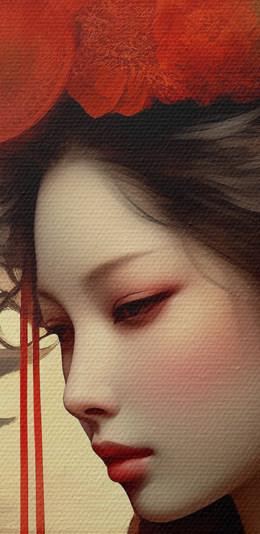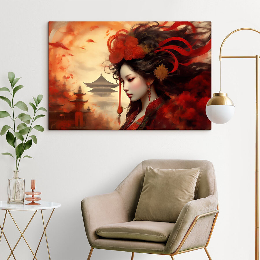 Stellen Sie sich Folgendes vor: Sie betreten Ihr Wohnzimmer und plötzlich fällt Ihr Blick auf dieses atemberaubende Bild einer Frau mit langem, wallendem Haar, das mit roten Blumen geschmückt ist. Es ist, als wäre sie Teil einer bezaubernden Geschichte, und Sie können nicht anders, als sich in den Details zu verlieren. Perfekt für alle, die einen Hauch von japanischer Eleganz in ihrer Einrichtung lieben. Die Mischung aus traditioneller Ausstrahlung und leuchtenden Farben – vor allem die Rottöne – verleihen jedem Raum ein warmes, fesselndes Flair. Es ist mehr als nur Wandkunst; es ist, als hätte man ein Stück eines Traums. Stellen Sie sich vor, Sie sitzen mit einer Tasse Tee da, blicken auf das Bild und spüren einen Hauch von Ruhe und Inspiration. Perfekt für eine gemütliche Leseecke oder sogar als auffälliges Statement in Ihrem Eingangsbereich. Glauben Sie mir, die Leute werden Sie nach Ihrem fabelhaften Geschmack fragen!