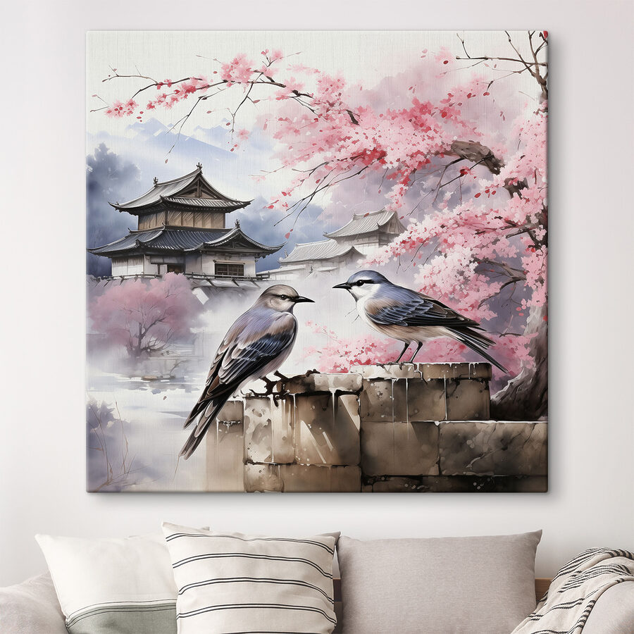 Dieser bezaubernde Leinwanddruck mit zwei charmanten Vögeln, die auf einer verwitterten Wand thronen, verwandelt Ihren Raum. Es ist wie ein kleines Stück Natur bei Ihnen zu Hause, das Ihnen einen Hauch von Gelassenheit in den Tag bringt. Stellen Sie sich vor, Sie nippen an Ihrem Morgenkaffee, während Sie sich in den zarten Farbtönen der Kirschblüten und der fernen, rustikalen Architektur verlieren – Sie fühlen sich wie auf einem friedlichen Spaziergang in Japan, nicht wahr? Dieses Stück ist perfekt geeignet, um jedem Raum einen sanften Touch zu verleihen, der Freude und vielleicht sogar ein Lächeln hervorruft. Außerdem ist es ideal für Momente, in denen man einfach nur etwas Schönes anstarren und die Gedanken schweifen lassen möchte (was wir alle ab und zu tun). Eine schöne Art, die einfachen Freuden des Lebens in den Mittelpunkt zu stellen.