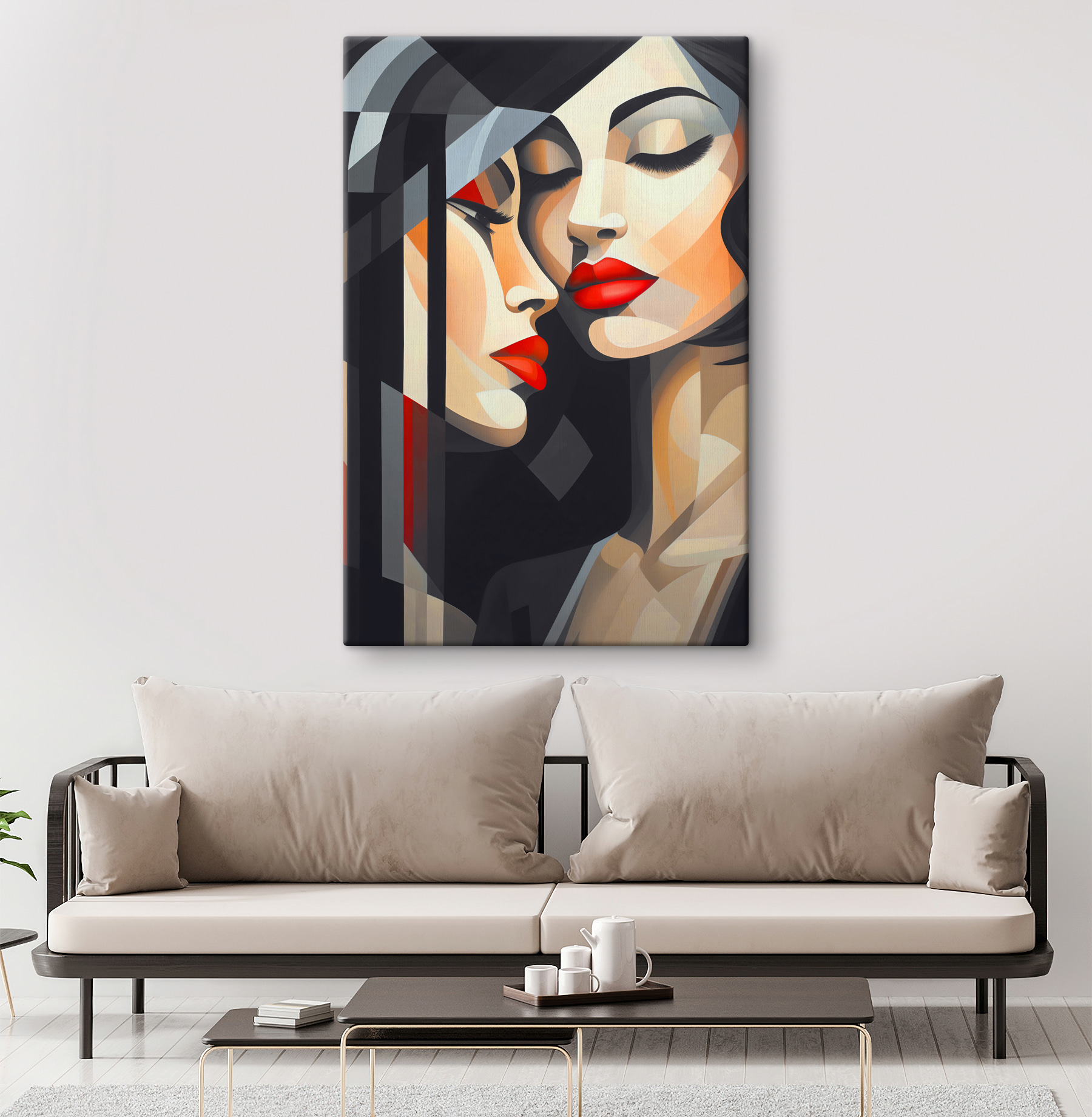 Stellen Sie sich das vor – ein Hauch von Leidenschaft und Geheimnis direkt in Ihrem Wohnzimmer. “Leinwanddrucke Abstrakte Umarmung mit leuchtend roten Lippen” ist wie das Einfangen eines zeitlosen Moments von Intimität und Eleganz. Diese kräftigen roten Lippen schreien geradezu nach Drama, nicht wahr? Der abstrakte Stil verleiht dem Bild den perfekten Hauch von modernem Chic. Es ist, als hätten Picasso und Romantik ein stilvolles Rendezvous an deiner Wand. Stellen Sie sich vor, Sie wachen auf, nippen an Ihrem Morgenkaffee, und siehe da – dieses Meisterwerk begrüßt Sie. Ein Hauch von Romantik, ein Hauch von Farbe und eine ganze Menge Stimmung. Perfekt für eine gemütliche Sitzecke oder als Blickfang über dem Sofa. Es ist mehr als Kunst, es ist ein Erlebnis.