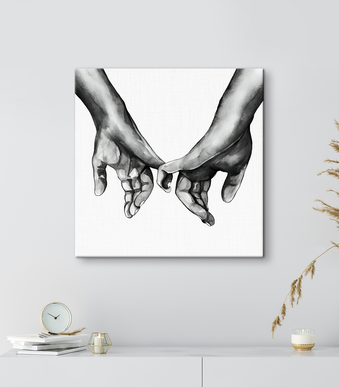 Dieser atemberaubende Leinwanddruck fängt die schlichte Schönheit zweier Hände ein, die sich gegenseitig halten – ein Bild, das mehr sagt als Worte. Stellen Sie sich vor, es schmückt Ihre Wand, eine sanfte Erinnerung an Verbindung und Wärme. Das schwarz-weiße Design verleiht dem Bild einen Hauch von Eleganz und macht es perfekt für jeden Raum. Stellen Sie sich vor, dass Freunde vorbeikommen, innehalten, um dieses Stück zu bewundern und Gespräche über Liebe, Freundschaft oder sogar einen Moment aus ihrem eigenen Leben anzuregen. Es ist nicht nur Kunst, sondern eine Erinnerung daran, dass wir alle diese Berührung, diese Verbindung brauchen. Perfekt für alle, die eine einzigartige Dekoration mit Herz zu schätzen wissen!