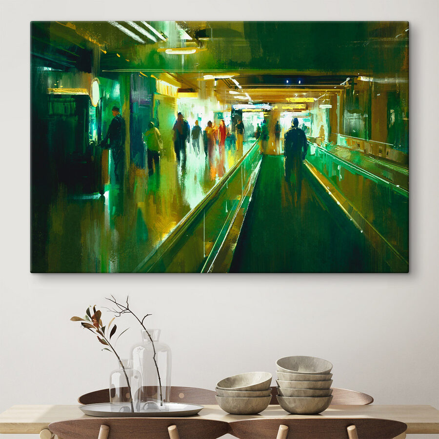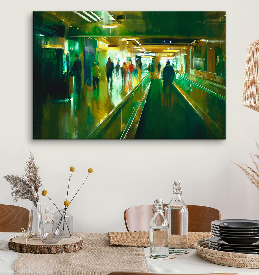 Hallo zusammen! Sieh dir diesen coolen Leinwanddruck “Gruppe von Menschen, die auf einer Rolltreppe gehen” an – es ist, als würde man den Herzschlag der Stadt einfangen. Stell dir das Bild an deiner Wand vor: leuchtende Farben, verschwommene Figuren, geschäftige Stimmung. Fast so, als befänden Sie sich inmitten eines belebten Bahnhofs, direkt in Ihrem Wohnzimmer! Perfekt, um Ihrem Raum einen Hauch von urbaner Energie zu verleihen. Es ist Teil der Kollektionen Cityscapes und Popular Canvas Art. Stellen Sie sich vor, Ihre Gäste entdecken es und sagen: “Wow, das ist ja was!” Es verleiht Ihrer Einrichtung das gewisse Etwas, das Sie vielleicht gerade brauchen. Es ist modern, es ist lebendig, und es ist definitiv ein Gesprächsanlass. Glauben Sie mir, dieses Stück wird Ihren Raum dynamisch und kosmopolitisch wirken lassen, ohne dass Sie sich darum bemühen müssen. Warum also nicht ein Stück Stadtleben in Ihr Zuhause bringen?