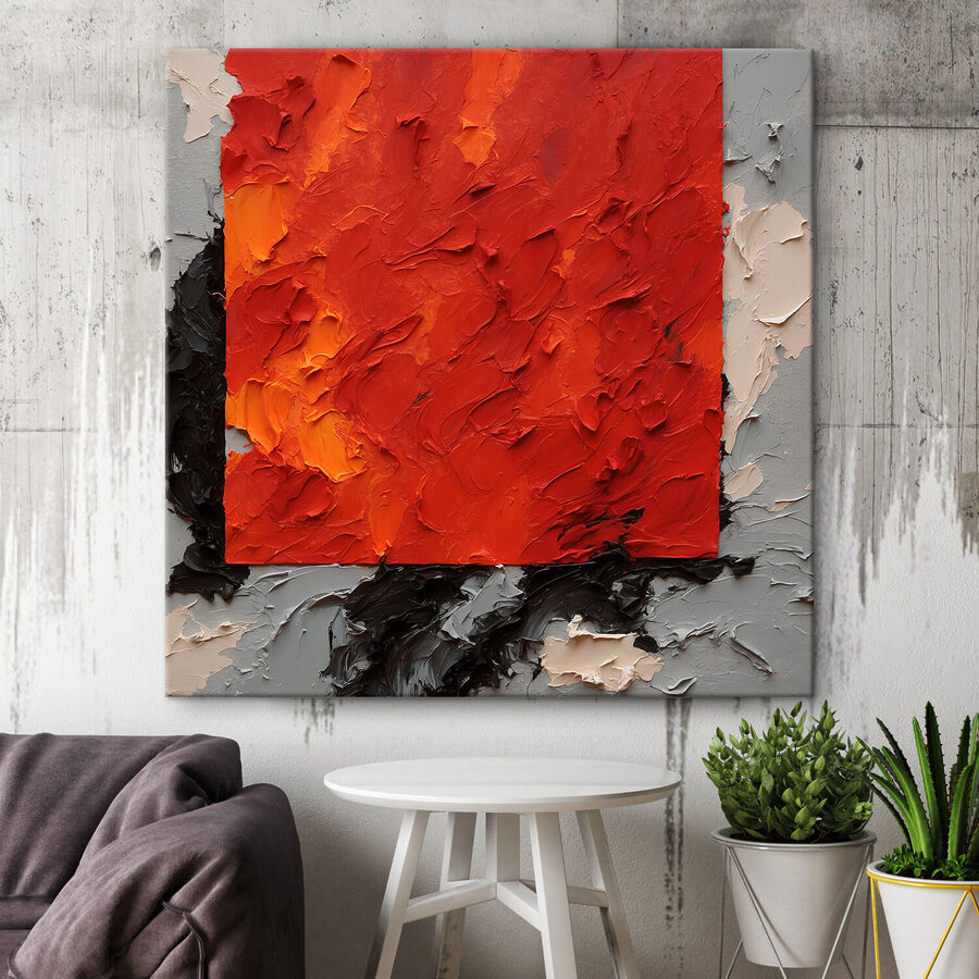 Erhellen Sie jeden Raum mit diesem kühnen Leinwanddruck, der wie die Essenz eines Sonnenuntergangs in Farbe eingefangen wirkt. Stellen Sie sich vor, Sie betreten einen Raum, in dem leuchtende Orangetöne und tiefes Schwarz miteinander tanzen und zu endlosen Komplimenten einladen. Dieses Werk ist nicht nur Kunst, sondern auch ein Gesprächsanlass. Perfekt für ein gemütliches Loft oder die eine Wand, die um Aufmerksamkeit bettelt. Es hebt die Stimmung und regt die Kreativität an, so wie die perfekte Tasse Kaffee, nur ohne die Nervosität. Ideal für alle, die Kunstwerke zu schätzen wissen, die die Dinge ein wenig aufmischen. Es ist nicht nur Dekoration, es ist ein Erlebnis, das auf sich warten lässt. Geben Sie Ihren Wänden eine warme Umarmung mit diesem lebendigen Meisterwerk!