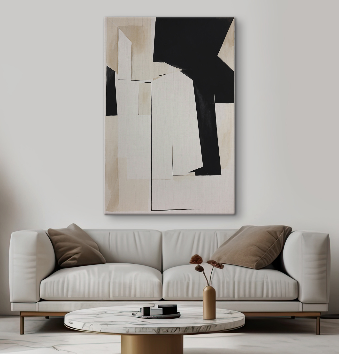 Dieser schwarz-weiße Leinwanddruck bringt einen Hauch von Raffinesse mit einer verspielten Note. Es ist wie ein kleiner Gesprächsanlasser an der Wand, der unaufdringlich zu Komplimenten und neugierigen Blicken einlädt. Die abstrakten Formen erzeugen einen faszinierenden Tanz zwischen Licht und Dunkelheit und sind damit perfekt für jede gemütliche Ecke oder jedes stilvolle Wohnzimmer. Stellen Sie sich vor, Sie schlürfen einen Kaffee, während Ihre Augen um das Kunstwerk herumwandern und jedes Mal etwas Neues entdecken. Dieses Kunstwerk ist perfekt für Liebhaber des Minimalismus, denn es verleiht einen Hauch von Persönlichkeit, ohne nach Aufmerksamkeit zu schreien. Ob Sie nun dekorieren oder umdekorieren, es ist eine wunderbare Ergänzung für jeden Raum.