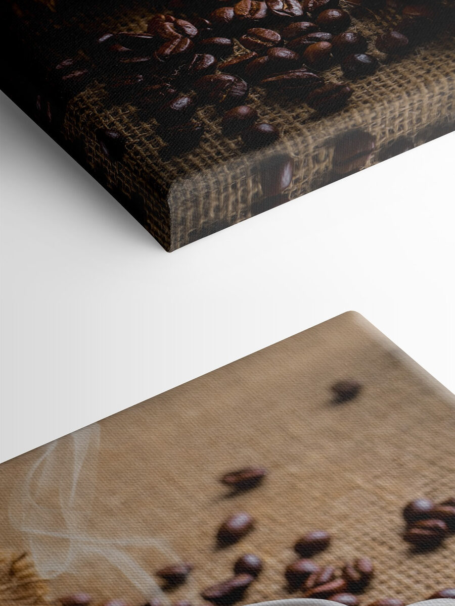 Sehen Sie sich diesen charmanten Leinwanddruck einer dampfenden Tasse Kaffee mit einem Sack aus Sackleinen an, der mit Kaffeebohnen gefüllt ist. Es ist, als würde man diesen gemütlichen, aromatischen Moment des morgendlichen Glücks direkt an der Wand festhalten. Stellen Sie sich vor, Sie betreten Ihre Küche oder Ihr Wohnzimmer und bekommen dieses warme, kuschelige Gefühl – als ob Sie das reichhaltige Kaffeearoma tatsächlich riechen könnten. Perfekt für jeden Kaffeeliebhaber oder jeden, der einfach eine gemütliche Atmosphäre liebt. Es ist wie eine morgendliche Aufmunterung von der Wand! Außerdem verleiht es Ihrem Raum einen schönen rustikalen Touch. Auf jeden Fall eine reizvolle Ergänzung, die jede Kaffee-Ecke oder jeden Essbereich verschönert.