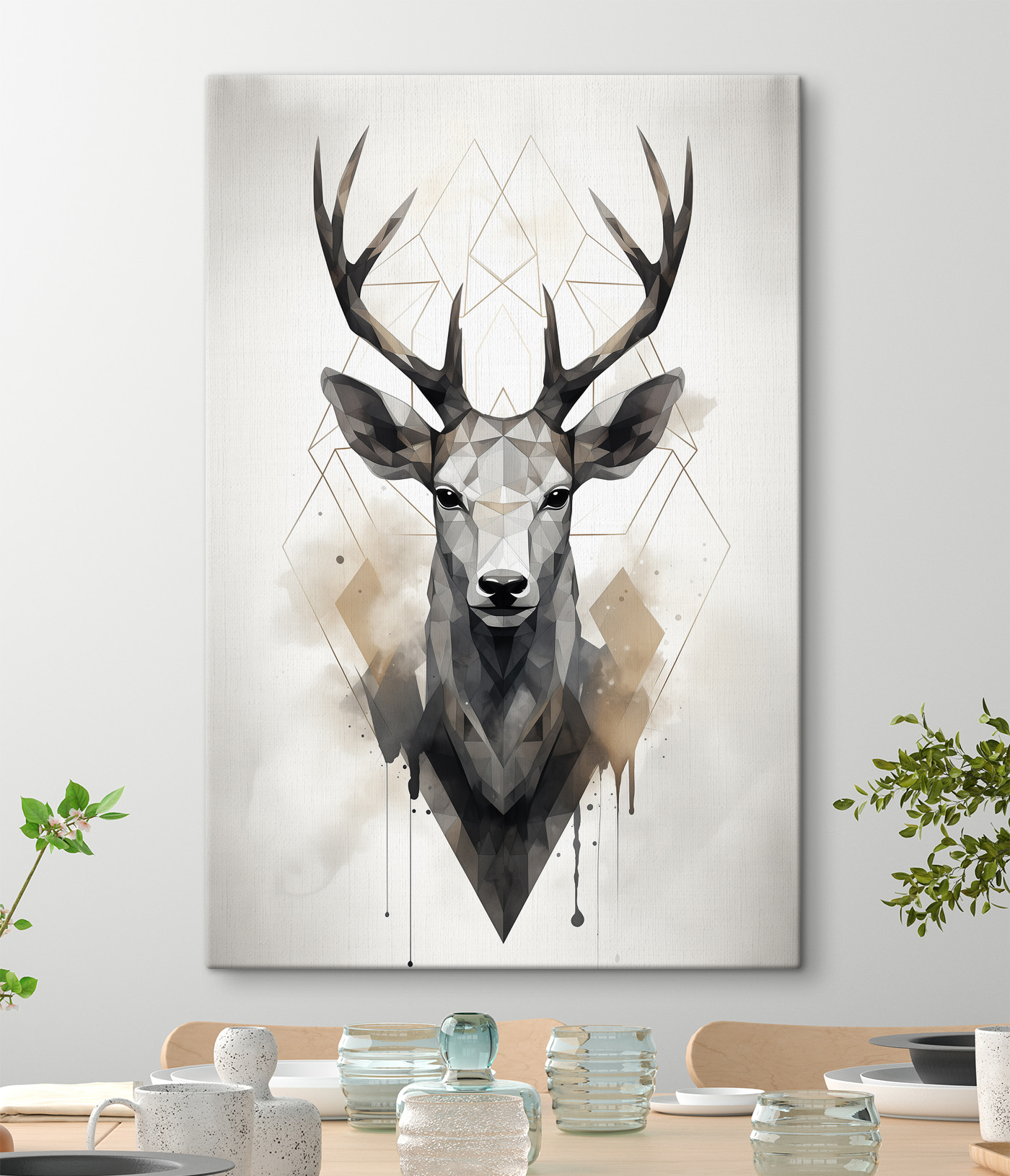 Stellen Sie sich vor, Sie kommen in Ihr Wohnzimmer und sehen den “Low Poly Deer with Antlers” aufgehängt. Es sorgt sofort für Gesprächsstoff – wer wäre nicht fasziniert von dieser modernen geometrischen Interpretation eines klassischen Waldtieres? Die klaren Linien und scharfen Winkel verleihen dem Bild einen Hauch von Raffinesse, während die sanften, erdigen Farbtöne es warm und einladend wirken lassen. Dies ist nicht nur Kunst, sondern ein Statement. Perfekt für alle, die ein bisschen Natur mit modernem Flair lieben. Außerdem verleiht es Ihrem Raum ein bisschen mehr “Sie”. Stellen Sie es sich einfach über dem Kamin oder als Mittelpunkt in Ihrem Büro vor – es bringt Charme und einen Hauch von Wildnis, wo immer es hingeht!