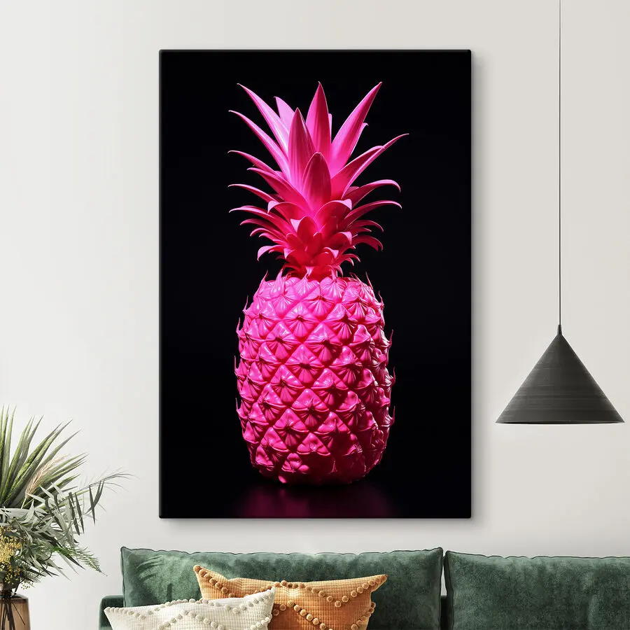 Wie cool ist dieser Leinwanddruck “Vibrant Pink Pineapple”? Wenn Sie Ihrer Einrichtung einen Hauch von Frechheit und Schwung verleihen wollen, könnte dies das perfekte Bild für Sie sein. Es nimmt die schlichte Ananas, lässt sie in einem kräftigen Pink erstrahlen und stellt sie vor einen schlichten schwarzen Hintergrund. Das ist eine tolle Kombination! Stellen Sie sich vor, Sie kommen in Ihre Küche oder in Ihr Wohnzimmer und sehen diese Schönheit an der Wand hängen – sie ist nicht nur ein Kunstwerk, sondern auch ein Gesprächsanlass. Ihre Freunde werden sich wundern und Sie werden wahrscheinlich jedes Mal schmunzeln, wenn Sie es sehen. Es ist flippig, witzig und völlig unkonventionell. Perfekt für alle, die sich nicht scheuen, ihre Persönlichkeit mit ihrer Wohnungseinrichtung zu zeigen. Also los, fügen Sie einen Hauch von Rosa hinzu und lassen Sie Ihre Wände Bände sprechen!