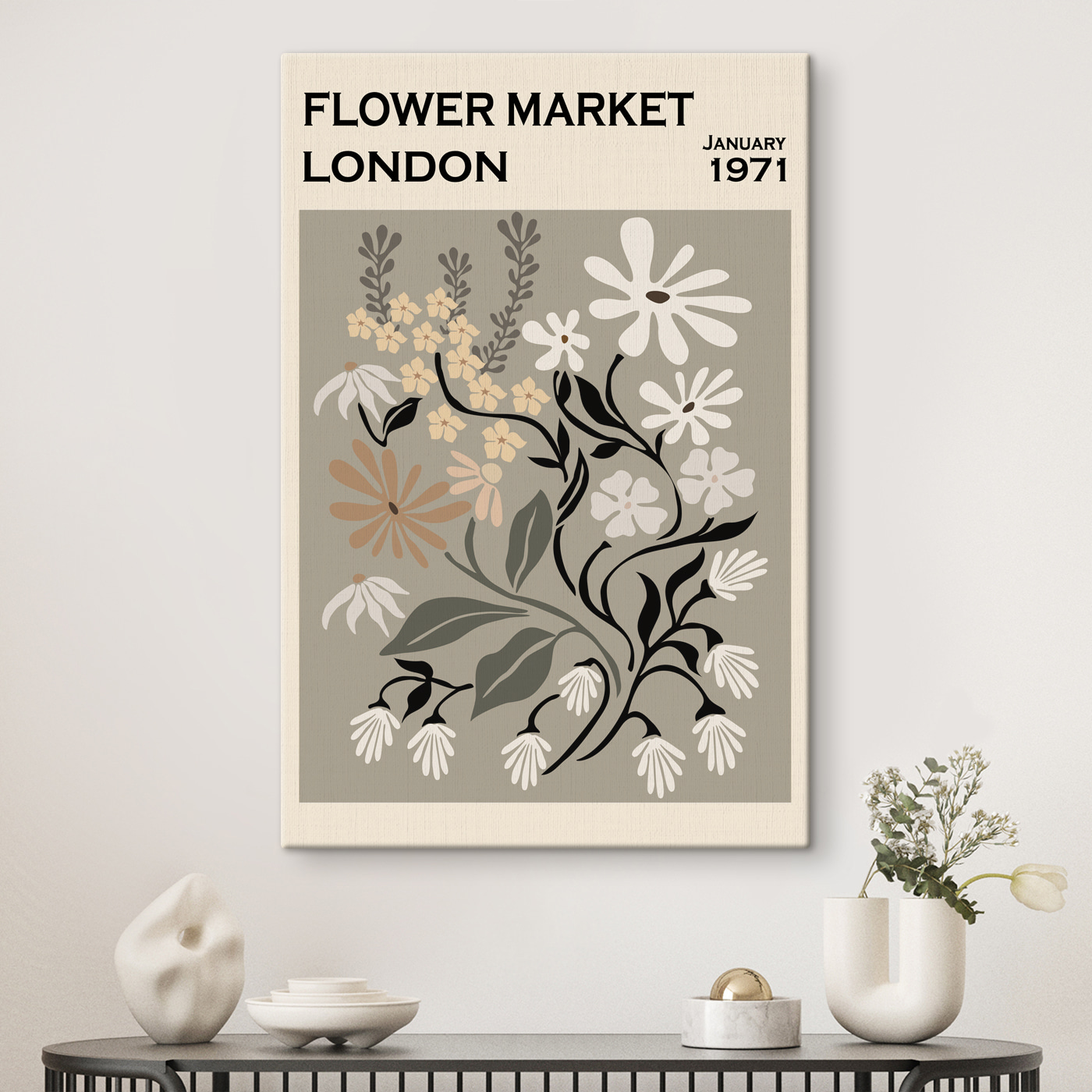 Hallo zusammen! Sieh dir diesen fantastischen Leinwanddruck “Vintage London Flower Market Poster” an. Es ist wie ein kleiner Ausschnitt eines Blumenmarktes aus dem Jahr 1971 direkt an deiner Wand. Der Old-School-Look und das zarte Blumendesign machen es perfekt für alle, die auf Boho und Flower-Power-Ästhetik stehen. Stellen Sie es sich in Ihrem Wohnzimmer vor, mit einem Hauch von Vintage-Charme und einem Hauch von Nostalgie. Es ist fast so, als könnten Sie das geschäftige Treiben auf dem Markt hören – das leise Summen der Verkäufer, das Rascheln der Blütenblätter und eine sanfte Londoner Brise. Stellen Sie ihn an einem Ort auf, an dem er das Licht einfängt, und beobachten Sie, wie er Ihren Raum erhellt und ihm eine gemütliche, skurrile Atmosphäre verleiht. Auf jeden Fall ein Gesprächsanlass!