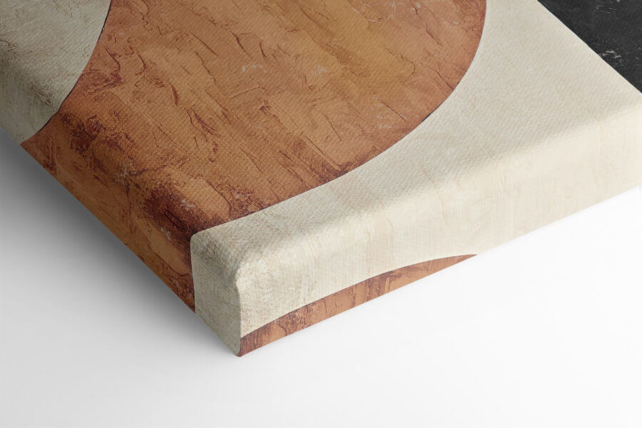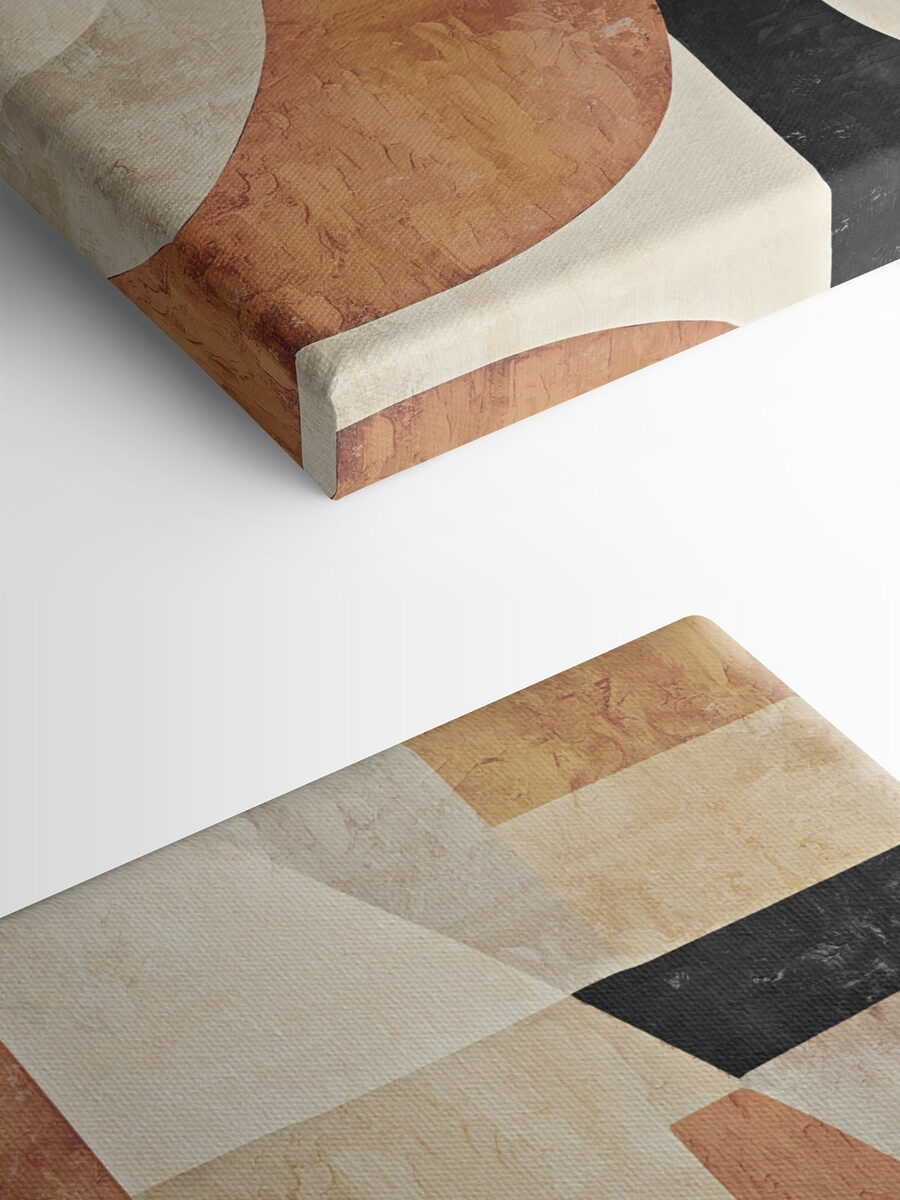 Mit diesem minimalistischen Leinwandbild ist es ganz einfach, eine triste Wand in einen atemberaubenden Blickfang zu verwandeln. Stellen Sie sich vor, es würde über einer gemütlichen Couch hängen und Ihren Raum mühelos in Szene setzen. Die beruhigende Palette aus warmen Tönen und geometrischen Formen lädt Wärme ein und lässt jeden Raum einladender wirken. Es ist wie eine tröstende Umarmung für Ihre Wände. Beim Betrachten kann man sich sogar inspirieren lassen, während man einen Kaffee trinkt oder in einem Buch blättert. Außerdem ist es vielseitig genug, um zu jeder Stimmung zu passen, ob sie nun modern, boho oder ein bisschen eklektisch ist. Perfekt, um Charakter zu verleihen, ohne zu schreien: “Seht mich an!” – denn manchmal hat auch die Subtilität ihren Reiz.