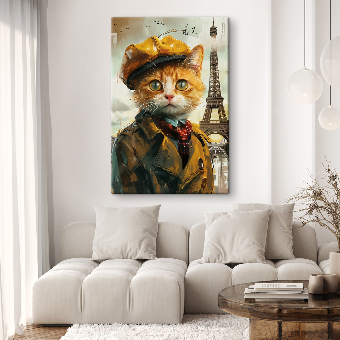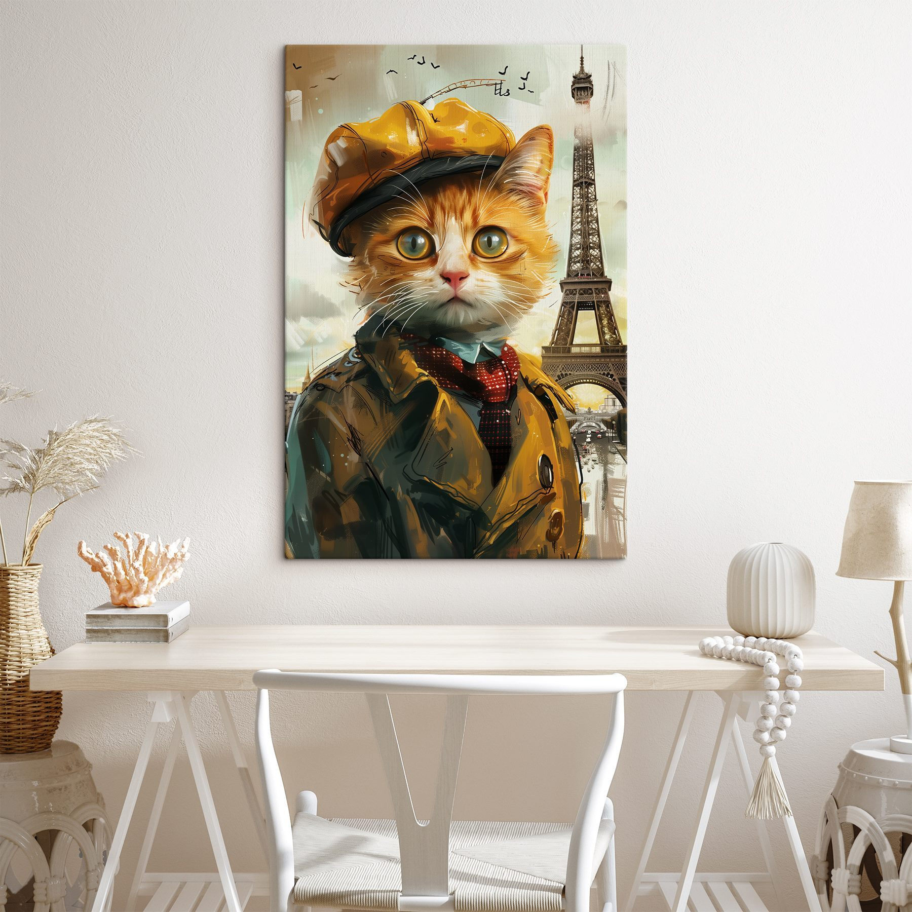 Sagen Sie der coolsten Katze in der Stadt der Liebe guten Tag! Dieser Leinwanddruck “Stylish Cat Enjoying Parisian Sights” ist nicht nur ein Kunstwerk, sondern ein Lebensgefühl. Stellen Sie sich vor, wie diese kultivierte Katze mit schicker Baskenmütze und Schal den berühmten Eiffelturm bewundert und Ihren Raum in einen Traum für Kunstliebhaber verwandelt. Perfekt für Kinderzimmer, tierische Ecken oder überall dort, wo ein Hauch von skurrilem Charme gefragt ist. Es ist die Art von Kunstwerk, die Sie jedes Mal zum Lächeln bringt, wenn Sie daran vorbeigehen. Außerdem wird es mit Sicherheit zu niedlichen Gesprächen anregen. Wer möchte nicht ein bisschen Pariser Katzenflair in seinem Zuhause haben?