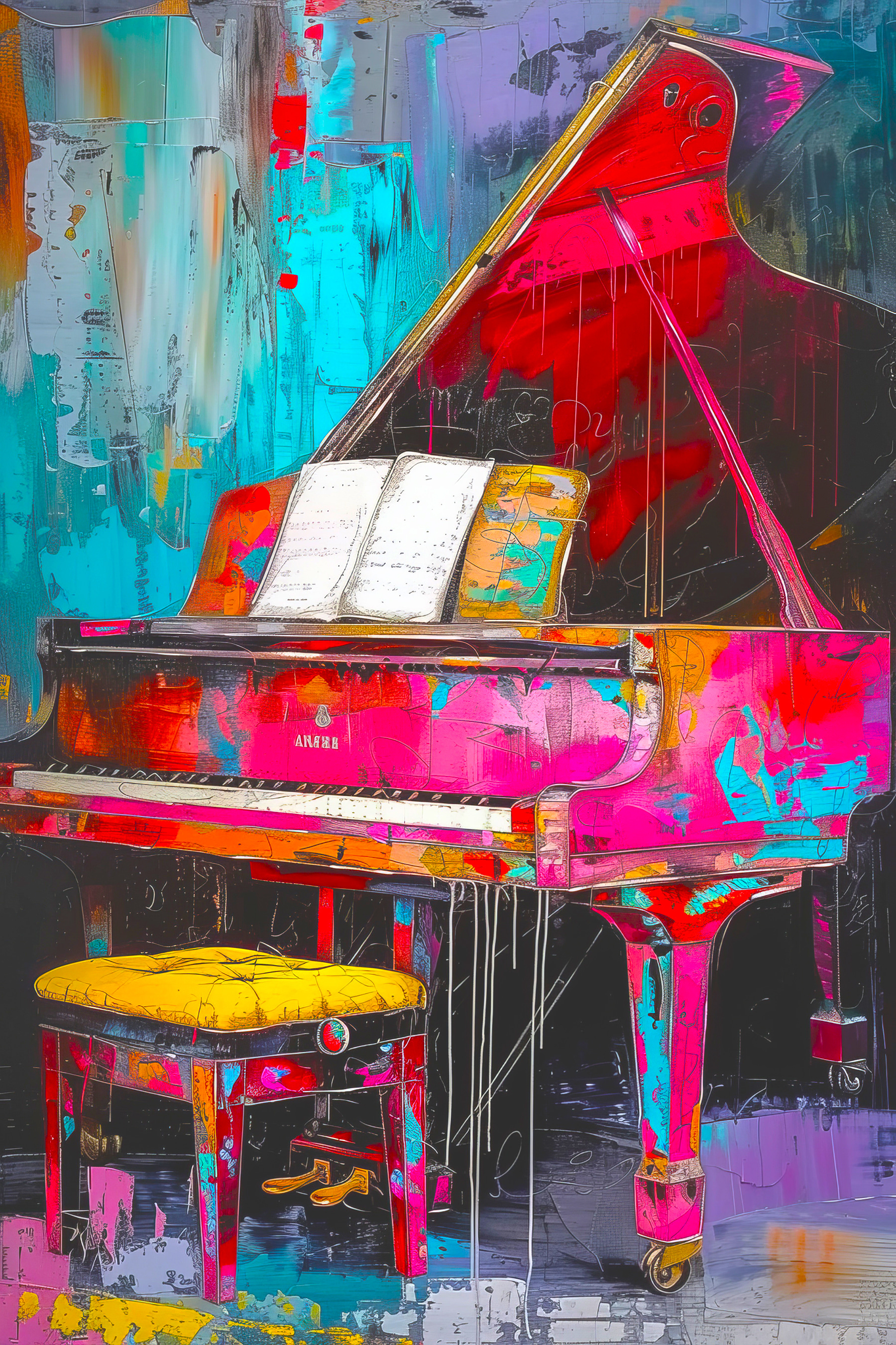 Möchten Sie Ihren Raum aufpeppen? Dann sehen Sie sich dieses farbenfrohe Leinwandbild mit dem Titel “Wandbilder Yellow Object with Black Lines” aus den Kollektionen Popular und Watercolor Canvas Art an. Es ist wie eine Party an Ihrer Wand – überall leuchtende Farben und schwarze Linien, die sich wie eine Melodie durch das Chaos ziehen. Stellen Sie sich vor, Ihr Wohnzimmer würde von diesem kreativen Spritzer erhellt. Es ist energiegeladen, es macht Spaß, und ehrlich gesagt lässt es jede andere Dekoration drum herum langweilig aussehen. Perfekt für alle, die einen Spritzer (oder mehr) Farbe in ihrem Leben lieben. Machen Sie sich bereit für Komplimente!