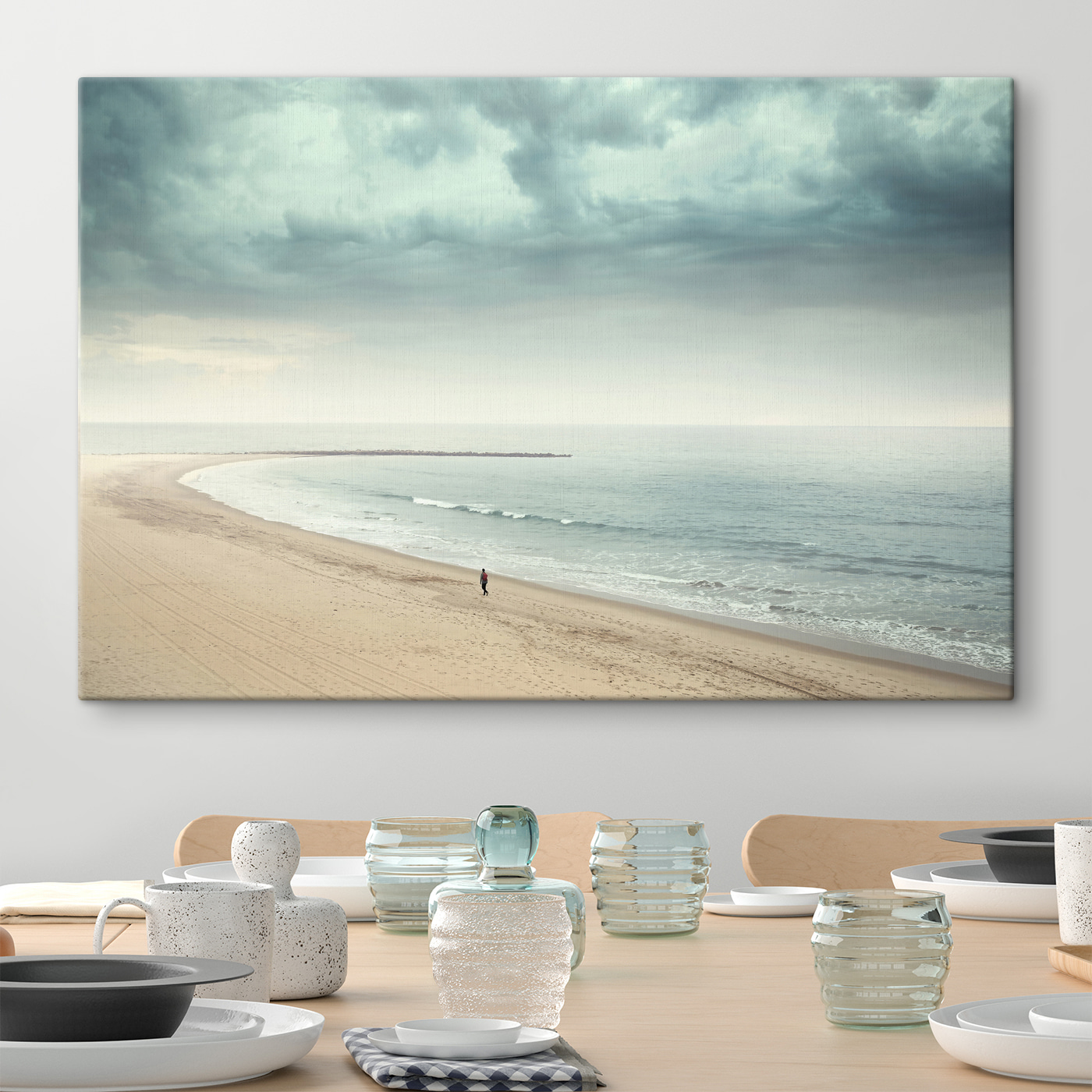 Ist das nicht einfach atemberaubend? Stellen Sie sich vor, Sie spazieren in der Morgendämmerung am Strand entlang, die sanften Wellen flüstern Geheimnisse, und der Horizont erstreckt sich, soweit das Auge reicht. Dieser Leinwanddruck “Person am Strand” fängt diese verträumte Stimmung ein. Stellen Sie sich das Bild an Ihrer Wand vor und holen Sie sich damit ein Stück des heiteren, endlosen Ozeans in Ihr Zuhause. Die sanften Farbtöne und der einsame Spaziergänger vermitteln ein Gefühl von Frieden und erinnern daran, durchzuatmen und zu entschleunigen. Perfekt für die Höhle eines jeden Naturliebhabers oder Ihre gemütliche Leseecke. Lassen Sie sich von diesem Stückchen Ruhe in Ihrer Einrichtung grüßen!