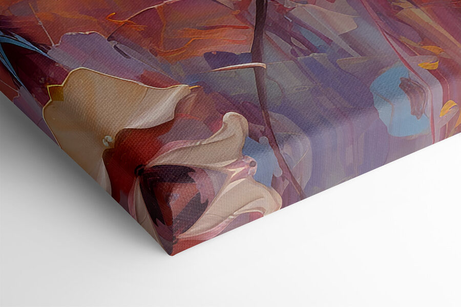 Es ist nicht nur etwas für Blumenliebhaber, sondern für jeden, der sanfte, skurrile Akzente in seinem Raum zu schätzen weiß. Der Aquarelleffekt verleiht ihm eine zarte, fast verträumte Qualität, die dazu verleitet, die Blütenblätter zu berühren. Ideal, wenn Sie auf eine Mischung aus modernem Flair und natürlichem Charme stehen.