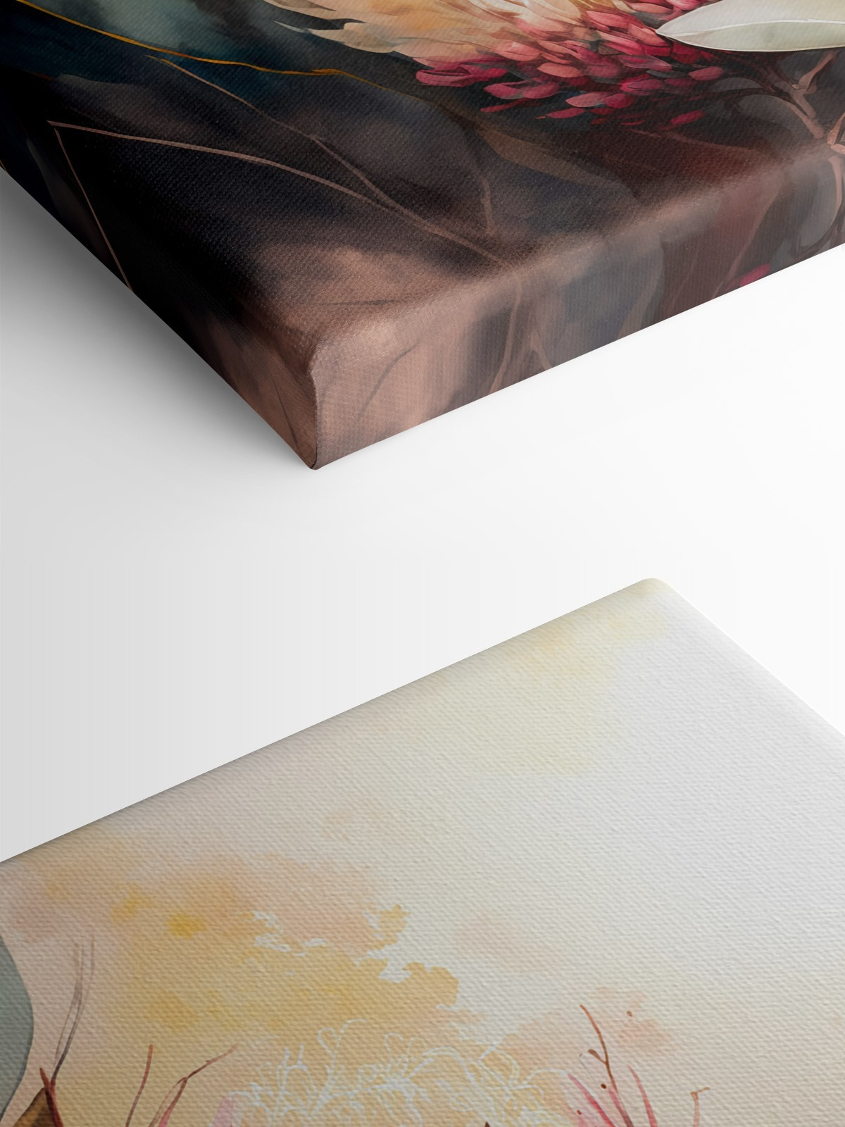 “Wandbilder Vibrant Blossoms in Watercolor Harmony” ist wie ein Hauch von frischer Luft direkt an Ihrer Wand. Es hat diese atemberaubenden, üppigen Blumen, die in satten, verträumten Aquarellfarben fast herauszuplatzen scheinen – ein bisschen wie ein Garten, durch den man an einem faulen Nachmittag wandern möchte. Die sanfte Mischung der Farben erzeugt eine so ruhige und doch lebendige Energie, dass es wie ein kleines Stück Kunst der Natur wirkt. Stellen Sie sich vor, Sie kommen nach einem anstrengenden Tag nach Hause und diese Schönheit empfängt Sie – das hebt sofort die Stimmung! Sie ist nicht nur für Blumenliebhaber geeignet, sondern hat einen unwiderstehlichen Charme, der zu jedem passt, der einen Hauch von Eleganz mit einem Spritzer Farbe sucht. Ideal für fast jeden Raum – Wohnzimmer, Schlafzimmer, sogar die Küche, denn warum nicht? Er hellt Räume mühelos auf und lässt sie lebendig und einladend wirken. Machen Sie sich also auf Komplimente gefasst; glauben Sie mir, die Leute können gar nicht anders, als ein Stück wie dieses zu bewundern.