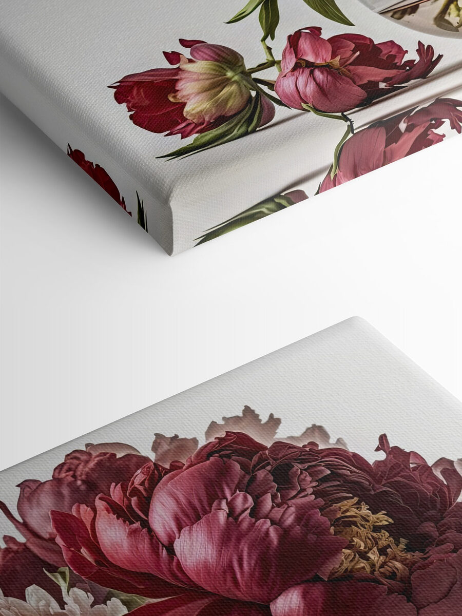 Dieser atemberaubende Leinwanddruck mit einem wunderschönen Arrangement aus Pfingstrosen in einer Glasvase bringt jeden Raum zum Strahlen. Diese Blumen strotzen geradezu vor Farbe und lassen das ganze Jahr über Frühlingsgefühle aufkommen – auch wenn es draußen schneit. Stellen Sie sich vor, Sie nippen an Ihrem Morgenkaffee, und die leuchtenden Blüten heben sofort Ihre Stimmung. Es ist, als hätte man einen kleinen Garten im Haus, ohne dass man sich um das Gießen kümmern muss! Dieses Kunstwerk eignet sich perfekt für eine gemütliche Ecke oder als Blickfang über der Couch und bringt einen Hauch von natürlicher Schönheit in Ihr Zuhause. Wer würde nicht jedes Mal lächeln, wenn er daran vorbeigeht?