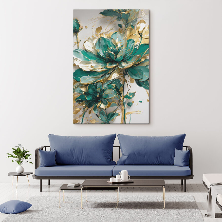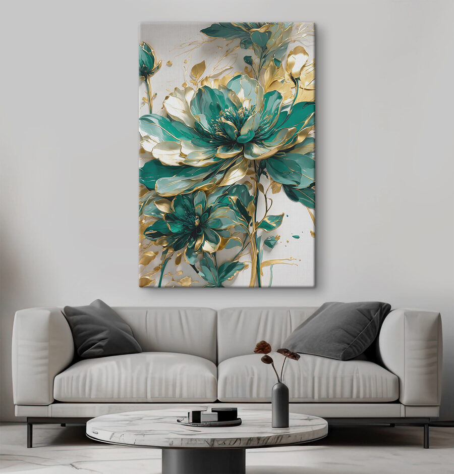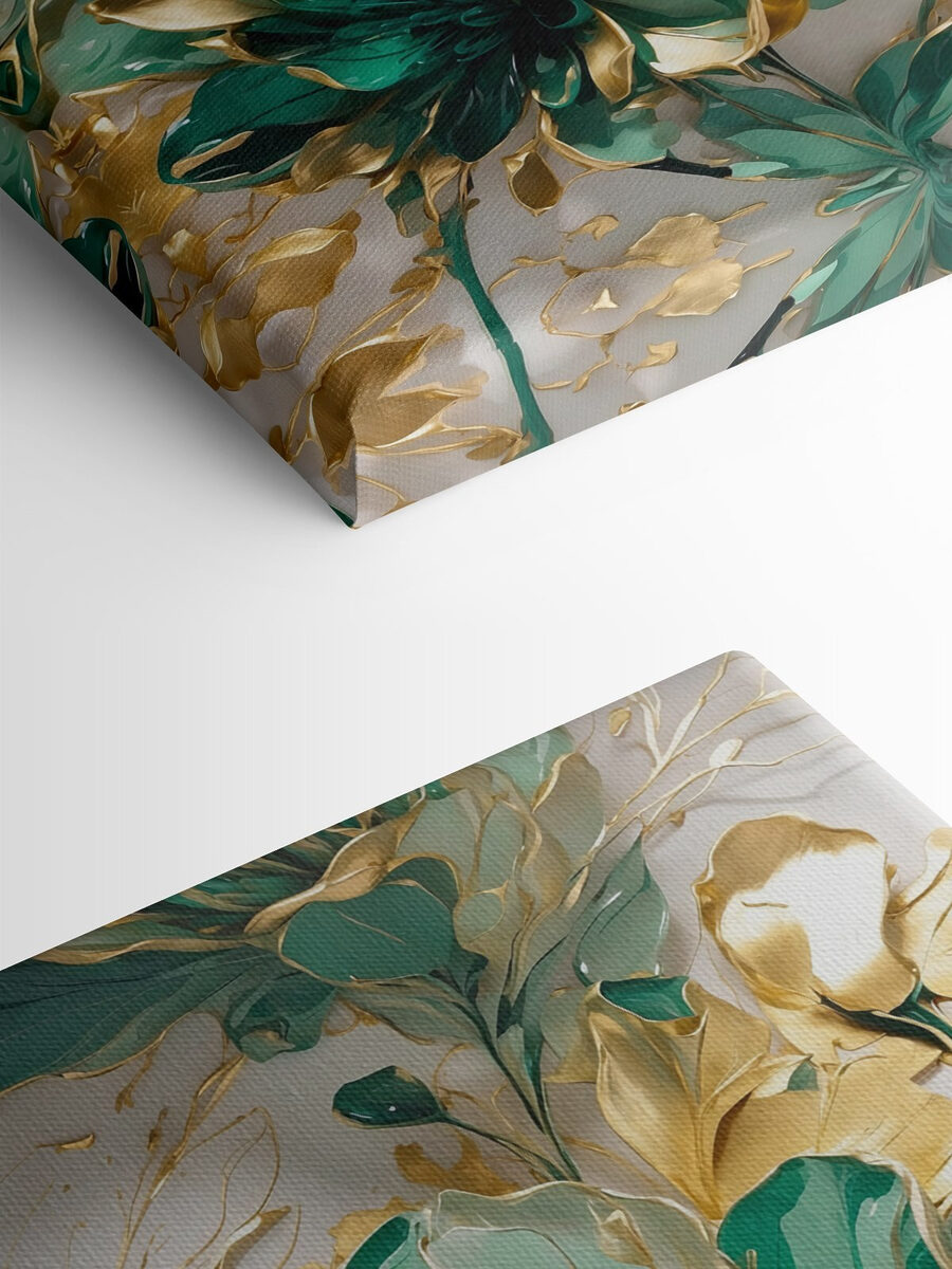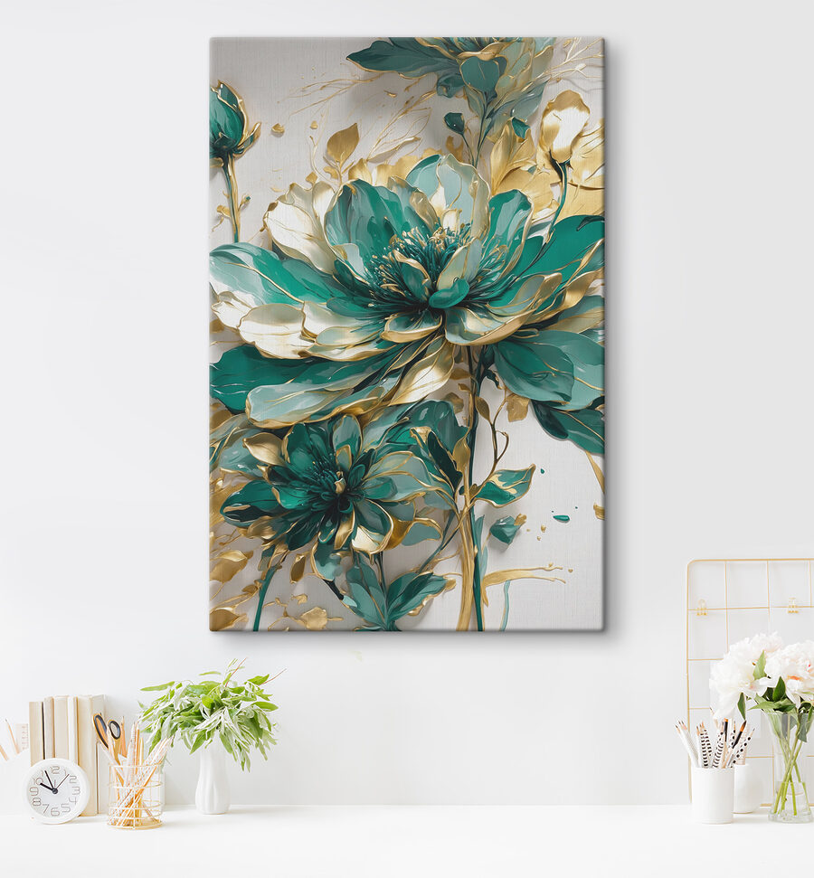 Stellen Sie sich vor, Sie betreten einen Raum, und schon ist es da, das Leinwandbild “Emerald Flowers”, das Ihnen die Show stiehlt, als gehöre ihm der ganze Raum. Lebendige Blüten und elegante Akzente schaffen eine fröhliche Atmosphäre, die trübe Wände aufhellt. Es ist, als würde man das ganze Jahr über einen Hauch von Frühling ins Haus holen. Stellen Sie sich gemütliche Abende vor, an denen Sie mit Freunden lachen oder an einem Kaffee nippen, und diese Schönheit sorgt dafür, dass sich die Kulisse besonders anfühlt. Sie eignet sich perfekt für ein Wohnzimmer oder sogar einen Flur und erinnert uns daran, innezuhalten und die Schönheit des Alltags zu schätzen. Wer hätte gedacht, dass sich Wandkunst so lebendig anfühlen kann?