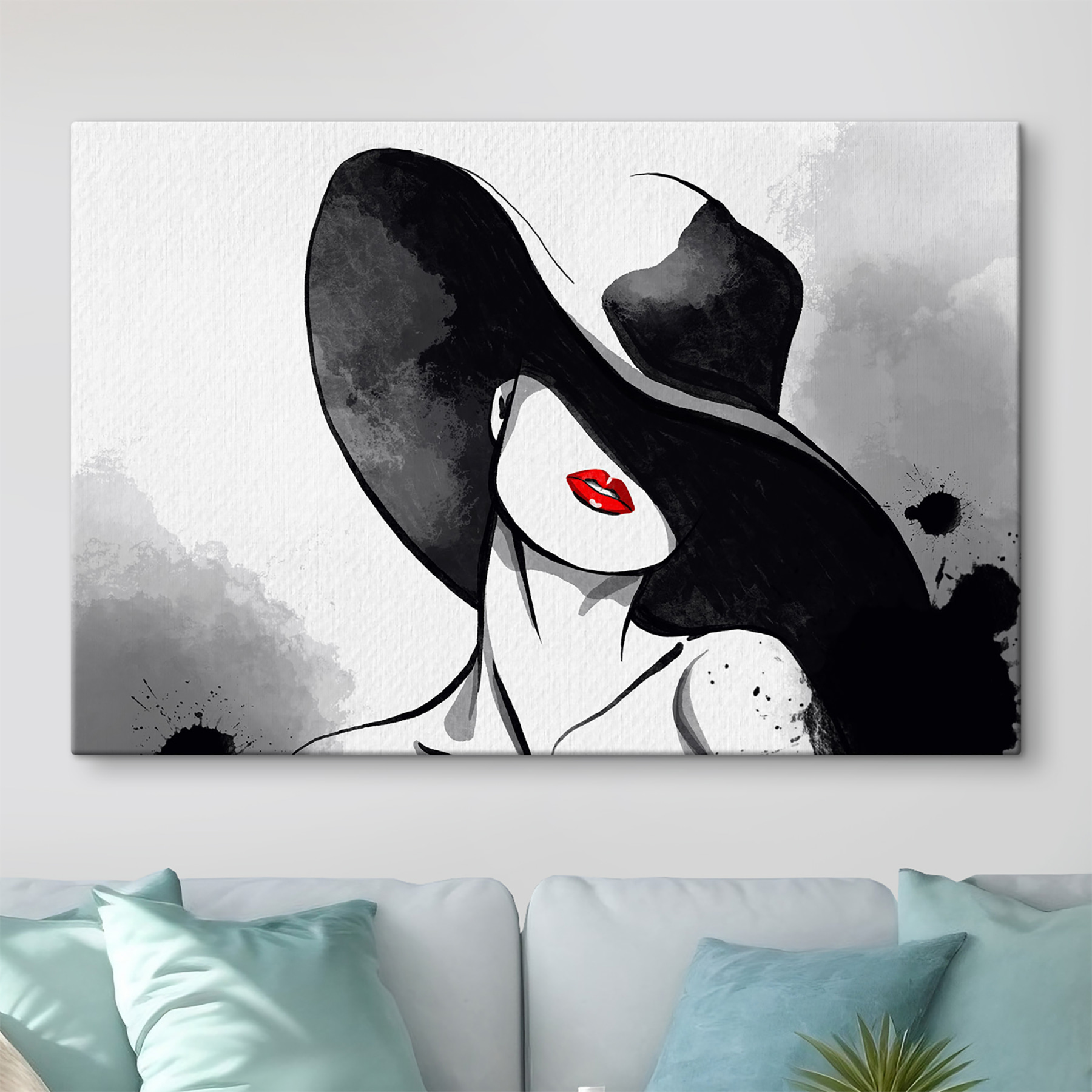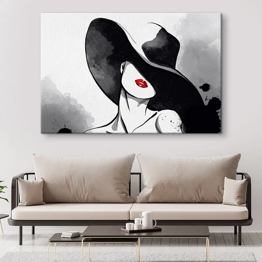 Stellen Sie sich vor, Sie würden Ihrem Raum mit diesem Leinwanddruck “Woman Wearing a Hat” einen Hauch moderner Eleganz verleihen. Es ist ein ziemlich raffiniertes Stück – kühn, ein wenig geheimnisvoll und sehr schick. Die auffälligen roten Lippen im Kontrast zu den schwarz-weißen Aquarellfarben verleihen ihm eine fast filmische Ausstrahlung. Perfekt, wenn du dich wie in einem stilvollen Film Noir fühlen willst. Stellen Sie es in Ihr Wohn- oder Schlafzimmer und Sie haben sofort einen Gesprächsanlass. Glauben Sie mir, es ist nicht nur eine Leinwand, es ist eine ganze Stimmung!