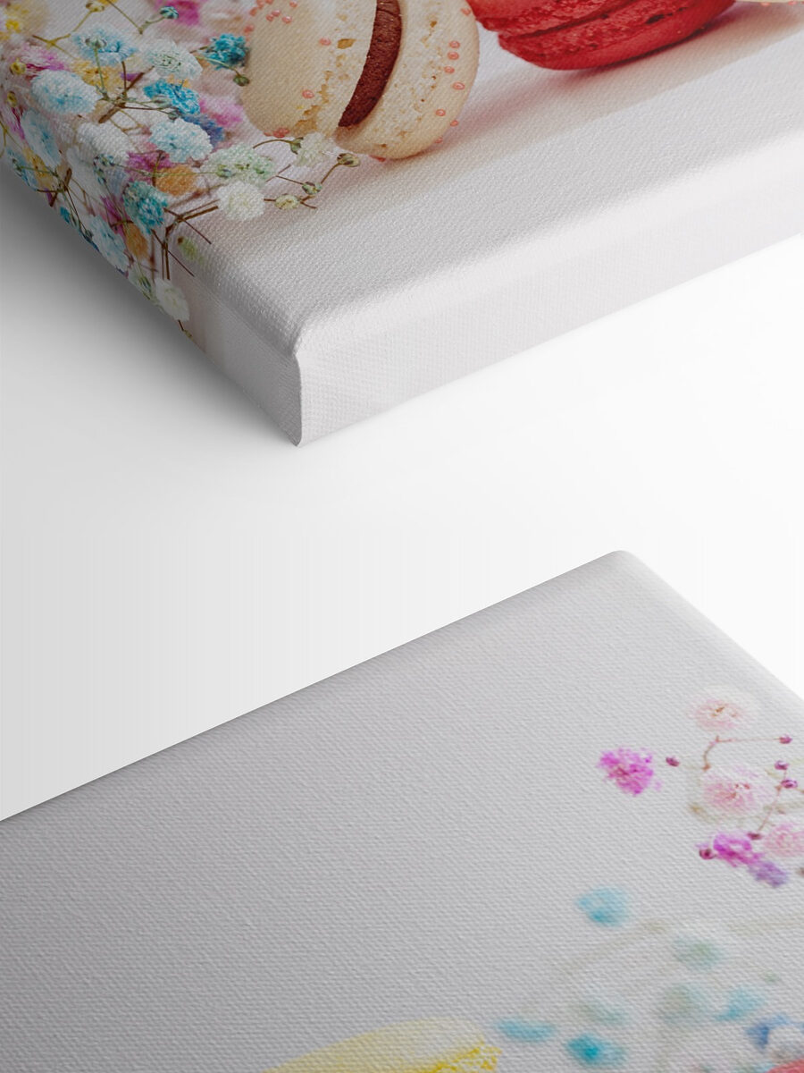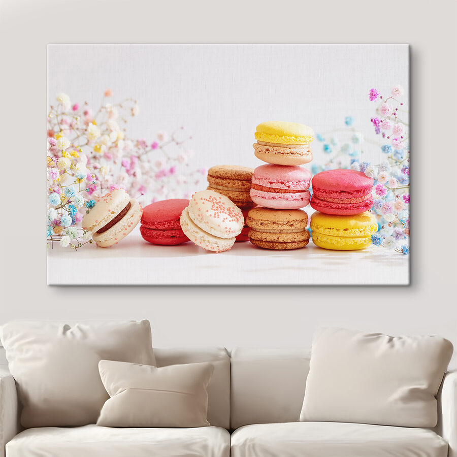 Verschönern Sie jeden Raum mit dieser charmanten Leinwand, die farbenfrohe Macarons inmitten von zarten Blumen zeigt. Es ist wie eine süße Einladung zum Genießen ohne Kalorien. Jedes Macaron leuchtet in Farbe und tanzt spielerisch vor einem sanften Hintergrund, der zum Lächeln und zu Tagträumen von müheloser Eleganz anregt. Stellen Sie sich dieses Stück in einer gemütlichen Küche oder in einem Café vor; es bringt sofort einen Hauch von Pariser Flair mit sich. Perfekt für alle, die daran glauben, dass man das Leben genießen sollte, eine köstliche Leckerei nach der anderen. Es ist mehr als nur Kunst; es ist ein kleiner Moment der Freude.