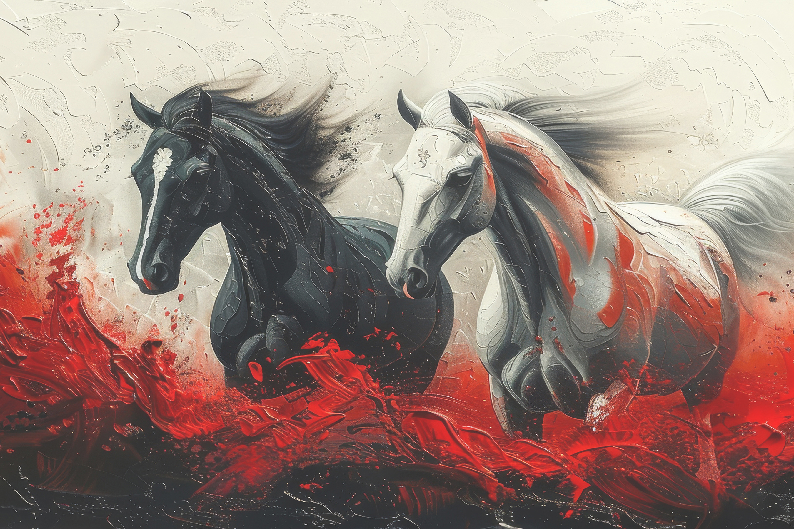 Hallo, Dekorationsliebhaber! Sehen Sie sich dieses unglaubliche Leinwandbild mit dem Titel “Horses Galloping Through Vibrant Colors” an. Es ist Teil unserer “Canvas Art with Animals”-Kollektion und, keine Überraschung, ein beliebter Hit. Stellen Sie sich diese kraftvollen Pferde vor, wie sie durch Ihr Wohnzimmer oder Büro rasen und mit jedem Hufschlag Energie und Dramatik verbreiten. Die Art und Weise, wie ihre Mähnen mit den roten und weißen Farbtupfern verschmelzen… es ist, als würde man die Bewegung im Stillleben einfangen. Perfekt für alle, die den wilden Geist der Tiere und einen Hauch von Farbe lieben. Und wer hätte nicht gern eine tägliche Erinnerung an Freiheit und Stärke direkt an der Wand? Dieses Werk wird Sie jedes Mal inspirieren, wenn Sie es betrachten. Ein absoluter Gesprächsanlass!