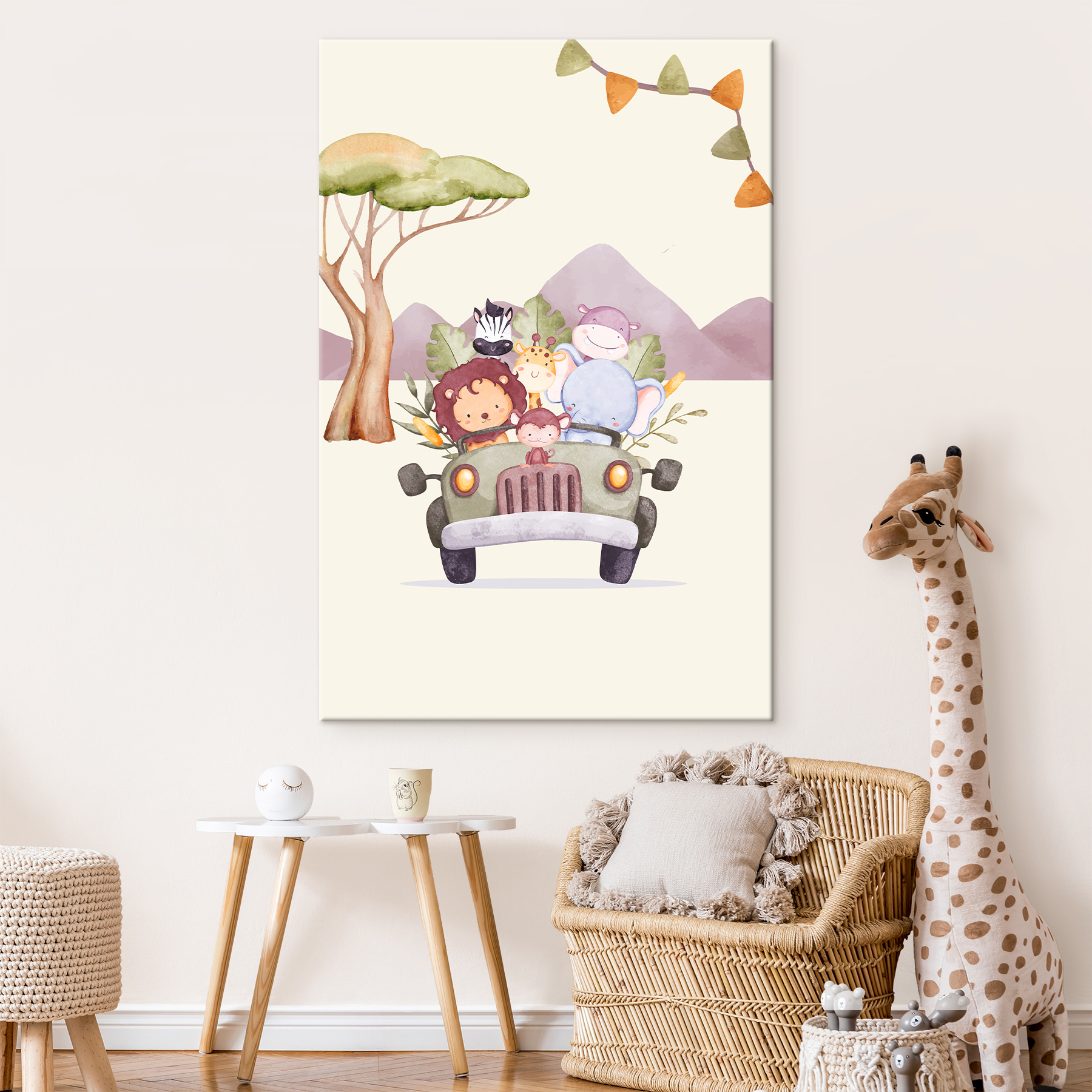 Ist das nicht einfach niedlich? Dieser Leinwanddruck mit dem Titel “Cartoon of a Zebra” ist perfekt für Kinderzimmer oder für alle, die eine Prise Laune lieben. Stellen Sie sich vor, Sie sehen diese verspielte Szene mit niedlichen Tieren, die in einem kleinen Jeep durch die Gegend fahren – Sie werden wahrscheinlich jedes Mal lächeln. Da sind ein Zebra, ein Löwe, eine Giraffe und viele mehr, die alle aussehen, als würden sie ein großes Abenteuer erleben. Die gedämpften Farben und süßen Ausdrücke sind genau richtig, um eine gemütliche, fröhliche Stimmung zu erzeugen. Es ist die Art von Kunst, die leicht zu einer beliebten Gute-Nacht-Geschichte oder zu einem fröhlichen Begleiter für ruhige Spielzeiten werden kann. Stell dir vor, es hängt über einem kleinen Bettchen oder einer Spielecke – und du hast sofort Freude daran! Es ist wie eine süße kleine Safari, die auf Leinwand festgehalten wurde, um Ihren Tag zu verschönern.