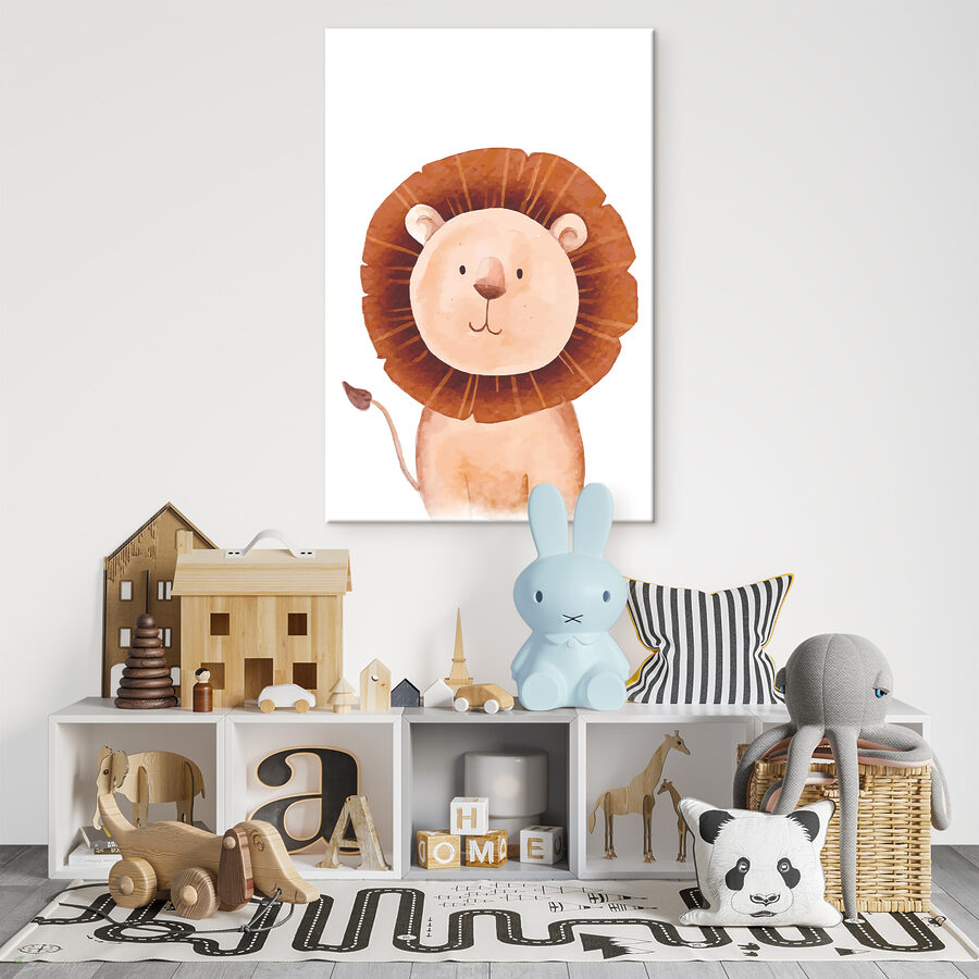 Sehen Sie sich dieses bezaubernde Aquarell-Löwen-Leinwandbild an! Mit seiner großen, flauschigen Mähne bringt er mit Sicherheit einen Hauch von Laune und Wärme in jeden Raum. Stellen Sie sich vor, wie er über ein Kinderzimmer wacht und es sicher und gemütlich macht, oder wie er das Spielzimmer eines Kindes mit seinem freundlichen Gesicht erhellt. Die weichen Aquarelltöne verleihen ihm ein künstlerisches Flair, während das schlichte Design es charmant und zugänglich macht. Perfekt für Tierliebhaber oder alle, die ihrer Einrichtung eine verspielte Note verleihen wollen. Er hat Charakter und einen Hauch von Schalk in den Augen – ich wette, er kann es kaum erwarten, Teil Ihres Hauses zu werden!