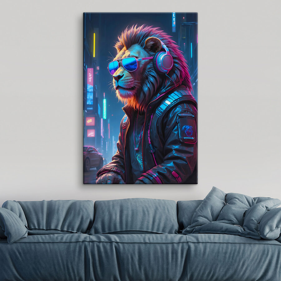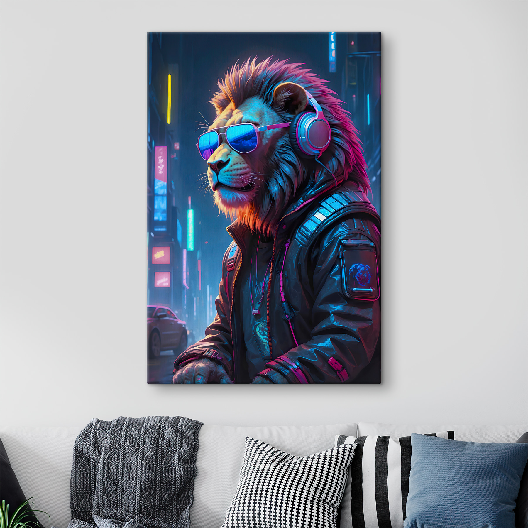 Schon mal einen so coolen Löwen gesehen? Diesem Leinwanddruck eines Löwen mit Sonnenbrille und Kopfhörern kann man einfach nicht widerstehen. Stell dir vor, du betrittst einen Raum und bumm! Da ist dieses königliche Tier, das lässig ein paar schicke urbane Klamotten trägt – wie der König des Dschungels, der zum DJ für dein Wohnzimmer wird. Die Farben sind knallig und neonfarben und damit das perfekte Stück für alle, die einzigartige, auffällige Kunst lieben. Es strahlt ein cooles, nächtliches Stadtbild aus, das eine langweilige Wand aufpeppen kann. Und wer würde nicht jeden Tag lächeln, wenn er einen so flippigen Löwen sieht? Auch ein toller Gesprächsgegenstand!