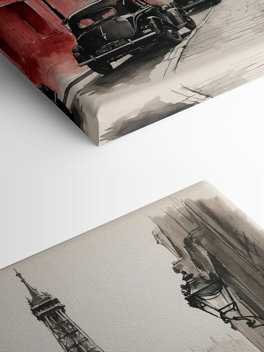 🚗🚗Stellen Sie sich vor, Sie würden in der Zeit zurückgehen und durch die romantischen Straßen von Paris schlendern, wo sich klassische Autos durch die zeitlose Architektur schlängeln. Dieser Leinwanddruck “Schwarz-Weiß-Zeichnung eines Autos” bringt diesen Zauber direkt in Ihre Wohnräume! Die sanften Pastelltöne der Bäume, die sich von den monochromen Gebäuden abheben, verleihen dem Bild einen unerwarteten Hauch von Wärme, den Sie lieben werden.