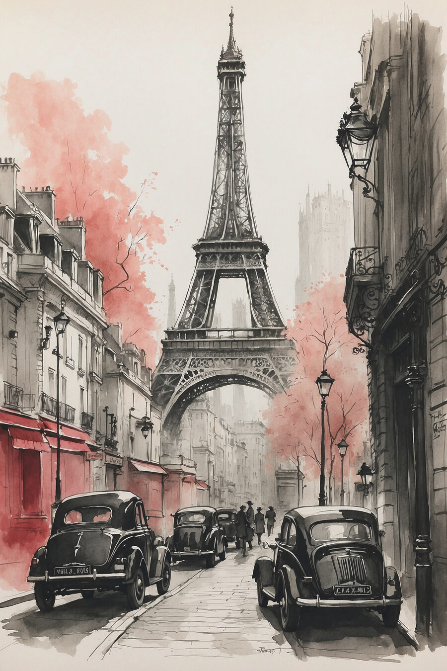 🚗🚗Stellen Sie sich vor, Sie würden in der Zeit zurückgehen und durch die romantischen Straßen von Paris schlendern, wo sich klassische Autos durch die zeitlose Architektur schlängeln. Dieser Leinwanddruck “Schwarz-Weiß-Zeichnung eines Autos” bringt diesen Zauber direkt in Ihre Wohnräume! Die sanften Pastelltöne der Bäume, die sich von den monochromen Gebäuden abheben, verleihen dem Bild einen unerwarteten Hauch von Wärme, den Sie lieben werden.