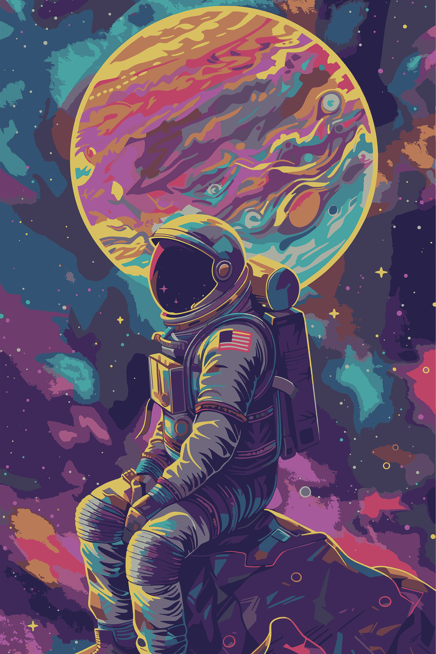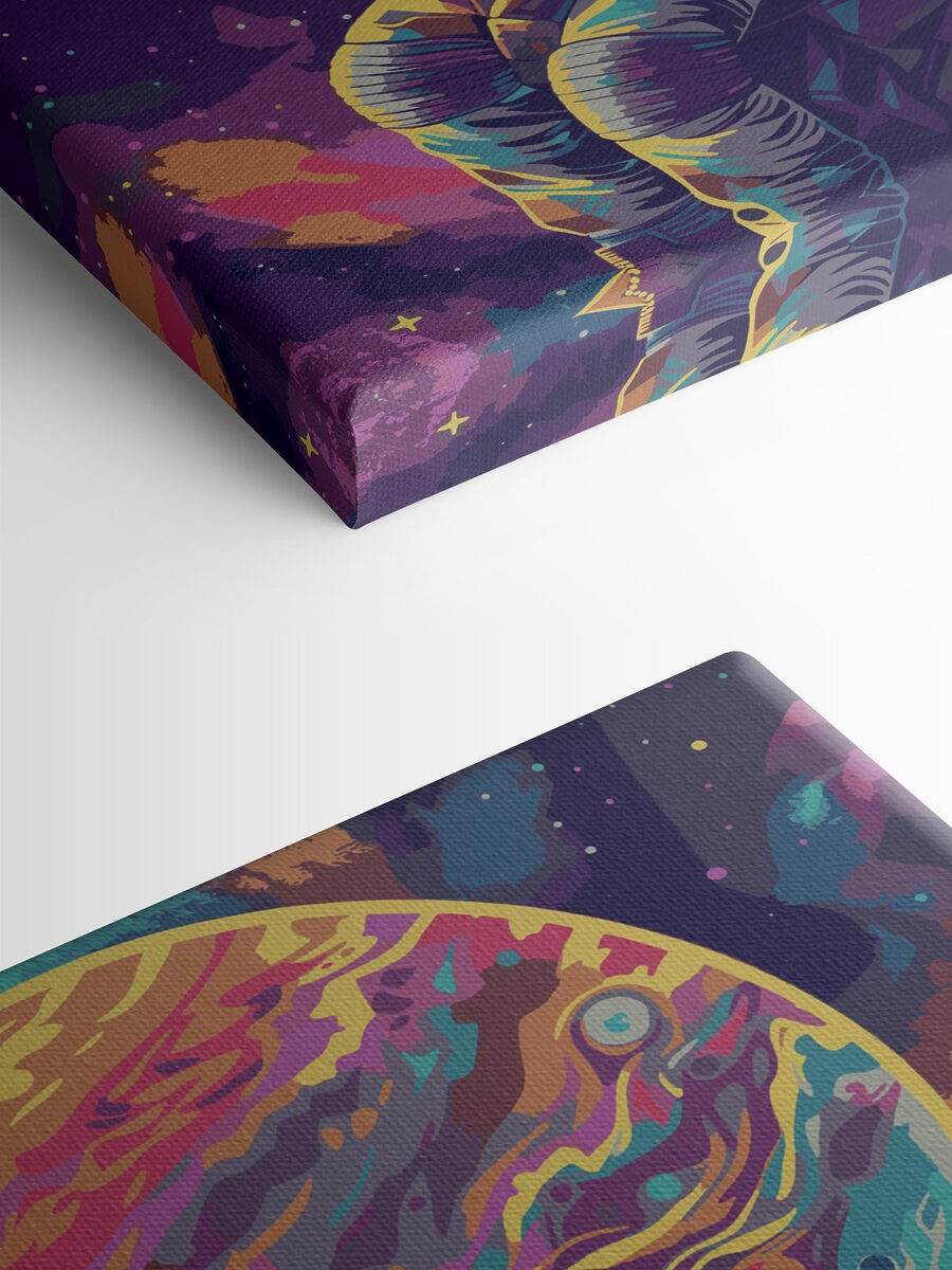 Verwandeln Sie jeden Raum in ein kosmisches Abenteuer mit diesem lebhaften Leinwanddruck eines Astronauten im Weltraum. Stellen Sie sich vor: Sie sitzen in Ihrem Wohnzimmer und Ihr Blick wandert zu einer Figur, die friedlich auf wirbelnde Galaxien und einen riesigen, bunten Planeten blickt. Es ist wie eine kleine Flucht ins Universum, ohne die Couch zu verlassen. Die Blau-, Rosa- und Violetttöne vermischen sich in einer Weise, die fast magisch wirkt. Perfekt für alle, die von den Sternen träumen oder einfach einen Hauch von interstellarem Wunder in ihrem Leben brauchen. Ihre Freunde werden Sie bestimmt fragen, woher die coole Kunst stammt. Wer weiß – vielleicht inspiriert dieser kosmische Freund ja zum nächsten großen Traum!