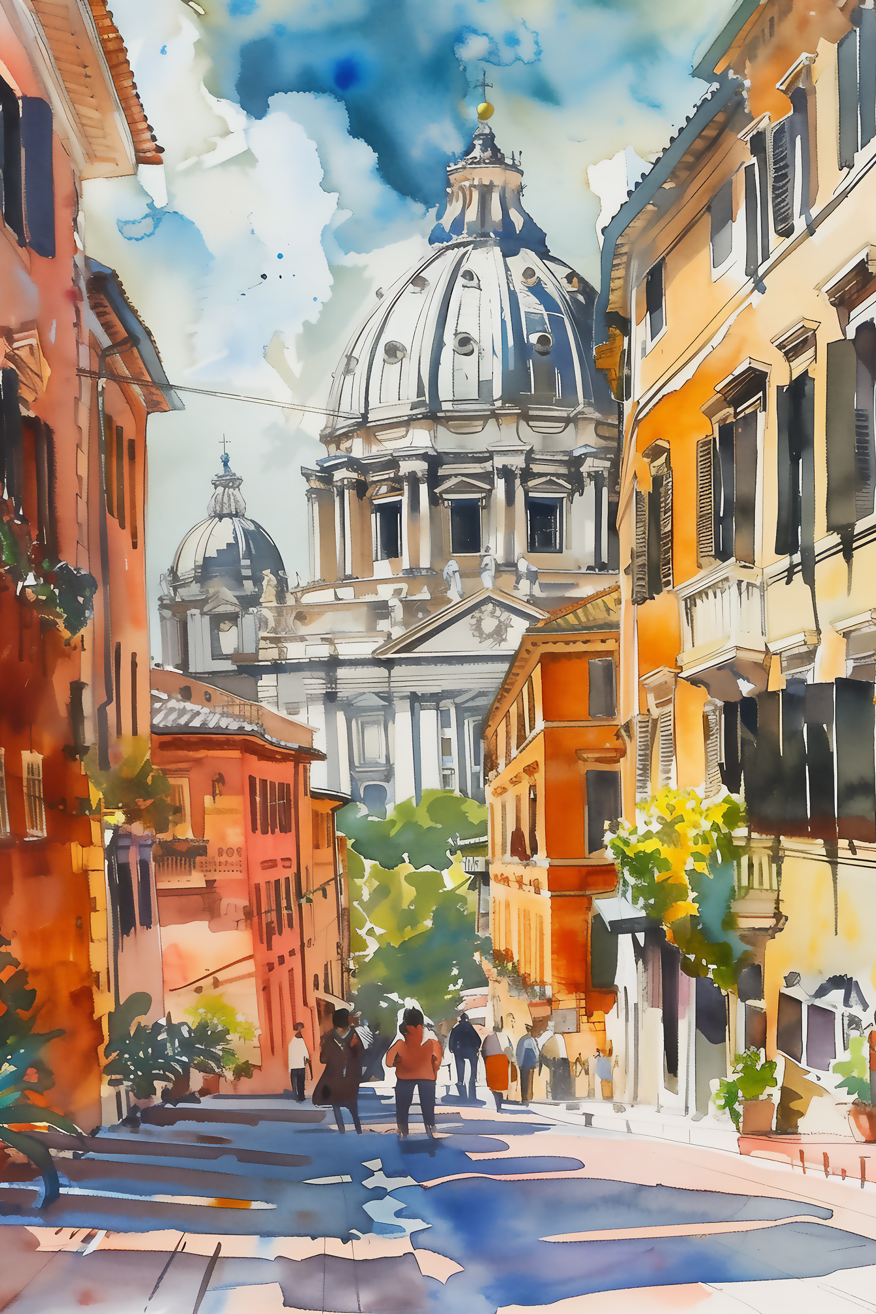 Dieses farbenprächtige Werk fängt den Charme einer klassischen Stadt ein – denken Sie an verwinkelte Straßen, warmes Licht und den Hauch von Geschichte. Es hat einen verträumten Aquarell-Touch, der sich fast wie eine schöne Erinnerung anfühlt… vielleicht an einen abenteuerlichen Sommer in den europäischen Gassen? Es ist genau das Richtige, um jedem Raum das gewisse Etwas zu verleihen.
