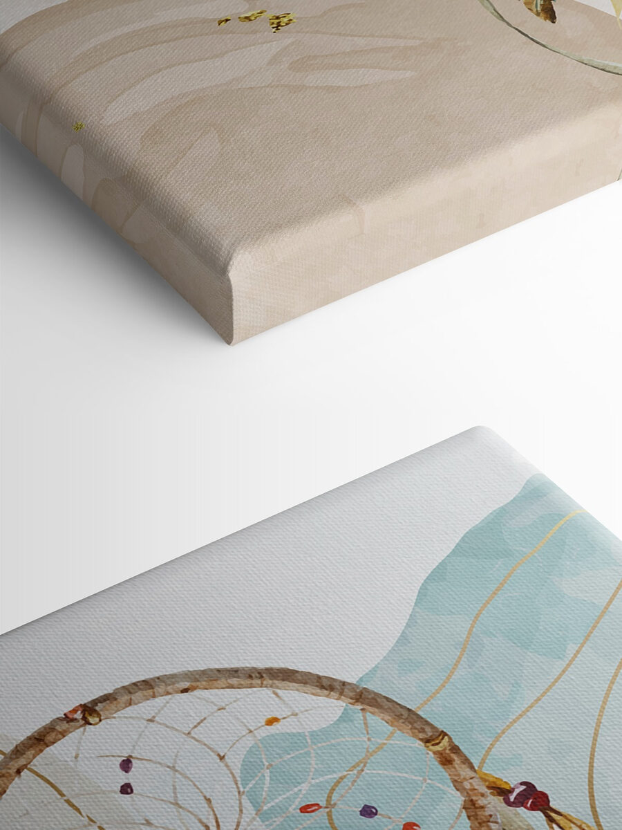 Verwandeln Sie Ihren Raum in einen gemütlichen Rückzugsort mit diesem bezaubernden Leinwanddruck eines Traumfängers. Stellen Sie sich vor, wie er mühelos an Ihrer Wand hängt und gute Laune und süße Träume einlädt, während er einen Hauch von Bohème-Charme versprüht. Das Aquarelldesign tanzt mit sanften Farben, und die zarten Federn scheinen fast bereit, in einer sanften Brise zu flattern. Stellen Sie sich vor, Sie machen es sich mit einem warmen Getränk auf der Couch gemütlich, betrachten dieses Kunstwerk und spüren, wie die Last der Sorgen von Ihnen abfällt. Es ist nicht nur Dekoration, sondern ein kleines Stück Gelassenheit, das flüstert: “Entspann dich, du schaffst das.” Es eignet sich perfekt für Wohn- oder Schlafzimmer und ist wie eine sanfte Umarmung für Ihr Zuhause.