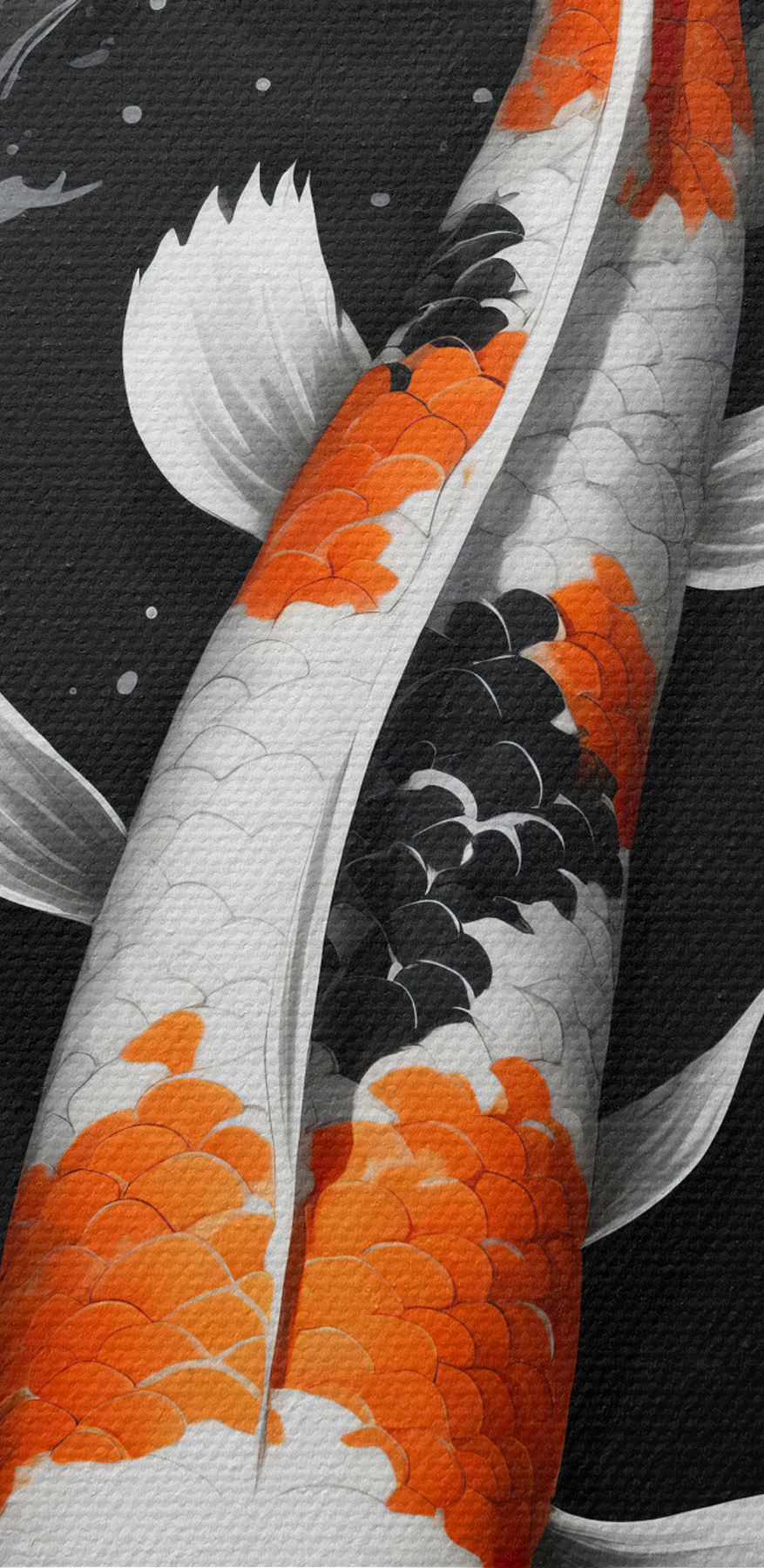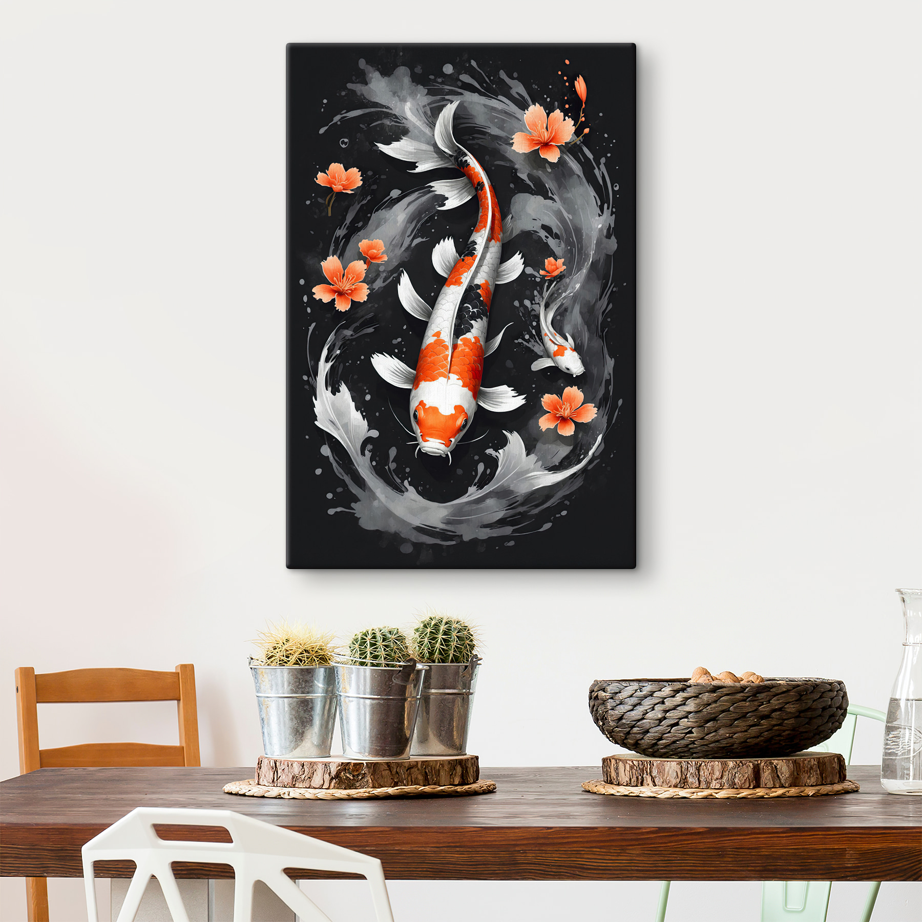 Sieh dir das an – ein Leinwanddruck, der im Grunde ein winziges Portal zu einem ruhigen, japanischen Garten ist. Es heißt “Wandbilder Koi fish swim with orange blossoms”, und ehrlich gesagt, es hat eine magische Ausstrahlung. Stellen Sie sich diese anmutigen Koi-Fische vor, die durch sanftes, wirbelndes Wasser schwimmen, während zarte Orangenblüten um sie herumfließen – es ist wie ein Tanz!