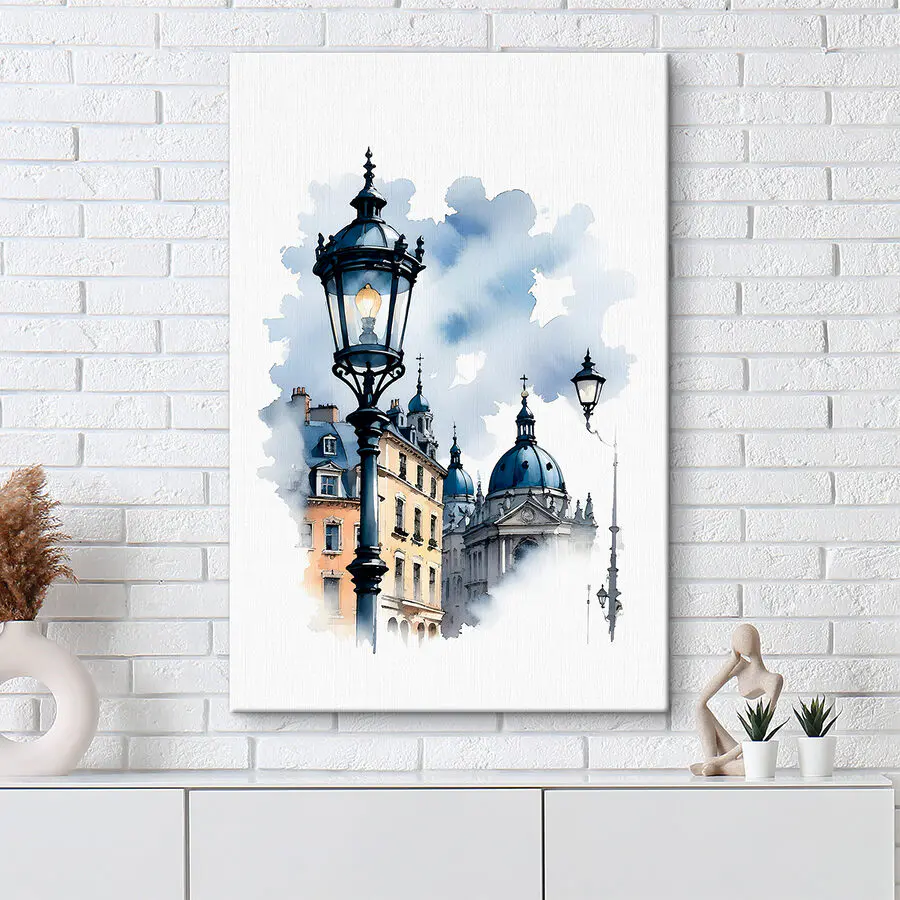 Dieser Leinwanddruck von “Straßenlaternen und Kuppel unter blauem Himmel” wird Ihnen gefallen. Stellen Sie sich vor: Sie haben diese charmanten Straßenlaternen der alten Schule und eine majestätische Kuppel vor einem perfekten blauen Himmel – wie eine Szene aus einer alten europäischen Stadt, oder? Es ist wie ein frischer Wind für Ihre Wände. Stellen Sie sich vor, Sie wachen jeden Tag mit diesem Anblick auf – es ist, als würden Sie durch eine historische Stadt schlendern, ohne Ihr Haus zu verlassen. Das Aquarell macht es noch verträumter und verleiht Ihrem Raum einen sanften, künstlerischen Touch. Ganz gleich, ob Sie sich für Architektur oder Kunst interessieren oder einfach nur etwas Einzigartiges lieben, dieses Stück ist ein Volltreffer. Es hat eine zeitlose Ausstrahlung, die in jeden Raum passt. Stellen Sie es sich einfach in Ihrem Wohnzimmer oder Büro vor – es wird die Stimmung total verändern. Im Ernst, es ist wie eine kleine Flucht auf einer Leinwand.