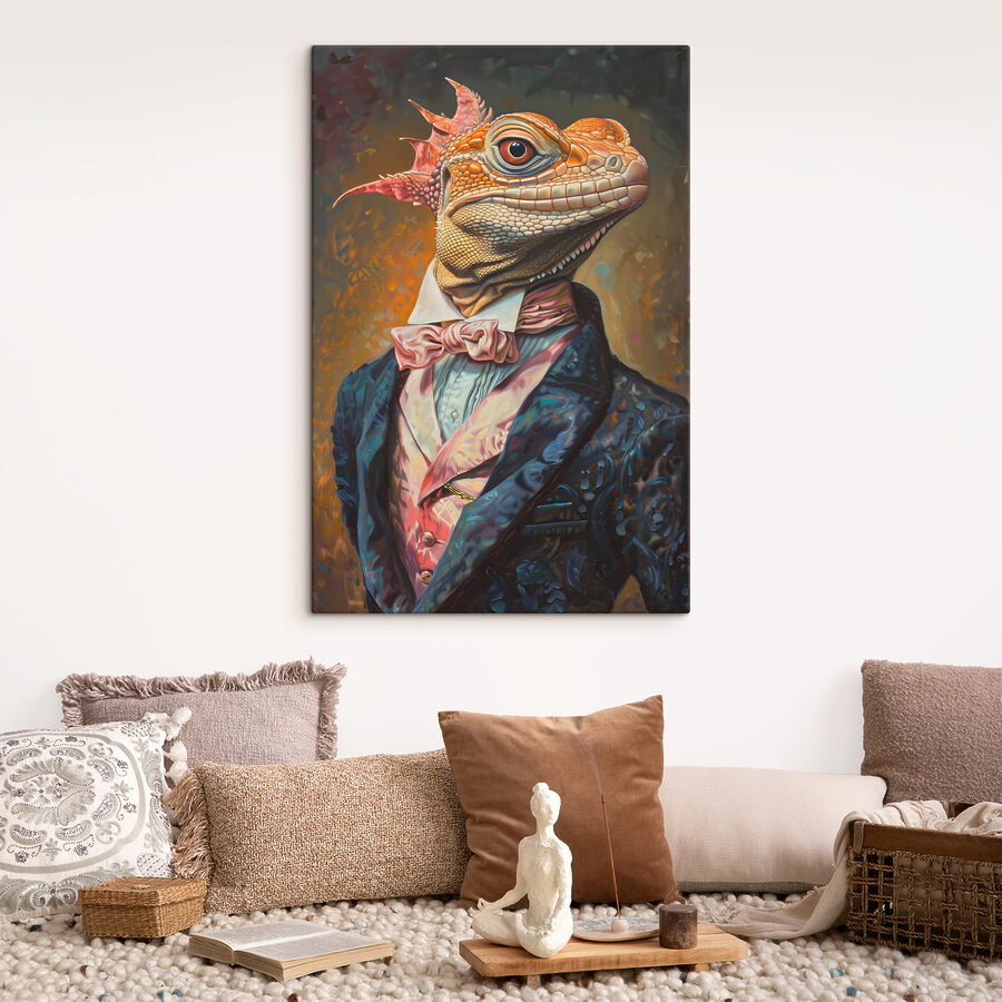 Haben Sie sich jemals gefragt, wie eine Eidechse in einem schicken Anzug aussehen würde? Dieser Leinwanddruck gibt Ihnen die Antwort mit einer reizvollen Wendung. “Dapper Lizard in Elegant Attire” ist perfekt für jeden, der ein bisschen Skurrilität in seiner Einrichtung liebt. Stellen Sie sich vor, wie dieses Bild an Ihrer Wand hängt und sofort für Gesprächsstoff unter Freunden und Familie sorgt. Die Details sind atemberaubend – von der Knusprigkeit seines Hemdes bis hin zur königlichen Stacheligkeit seines Wappens. Es ist, als wäre diese Eidechse direkt einem viktorianischen Roman entsprungen! Ob im Wohnzimmer, im Arbeitszimmer oder in einer schrulligen Ecke – dieses Kunstwerk sorgt überall für einen Hauch von Persönlichkeit und das ein oder andere Schmunzeln. Ein tolles Geschenk für den einzigartigen Kunstliebhaber in Ihrem Leben!