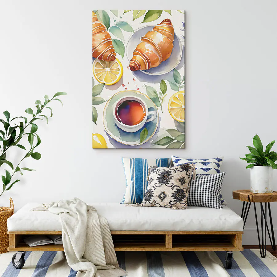 Stellen Sie sich vor, Sie kommen nach einem langen Tag nach Hause und werden sofort von einer warmen, einladenden Szene begrüßt – diesem gemütlichen Aquarell mit einer Tasse Tee und Croissants. Es ist fast so, als könnten Sie das frische Gebäck riechen und spüren, wie der Dampf des Tees aufsteigt. Wenn Sie diese Schönheit in Ihrer Küche oder Ihrem Esszimmer platzieren, wird Ihre Frühstücksecke zum ultimativen Zufluchtsort. Die weichen, sanften Farben und die detaillierten Pinselstriche machen es zu mehr als nur einem Kunstwerk – es ist wie eine kleine Erinnerung daran, langsamer zu machen, einen Schluck zu nehmen und das Leben zu genießen. Es ist perfekt, egal ob Sie ein Teeliebhaber sind oder einfach den Charme eines ruhigen Morgens lieben. Stellen Sie sich vor, Ihre Freunde bemerken es und fragen: “Wo hast du das her?” Für diese Momente des Friedens und der einfachen Freude ist es jeden Cent wert!