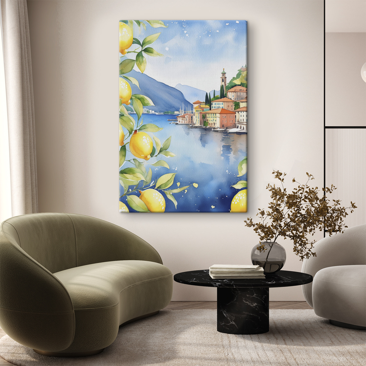 Stellen Sie sich einen sonnigen Nachmittag an einem ruhigen See vor, an dem der süße Duft frischer Zitronen durch die Luft weht. Dieser Leinwanddruck “Lemon Grove by the Lake” fängt diese verträumte Stimmung perfekt ein. Mit seinen sanften Aquarellfarben und dem charmanten Dorf am See bringt es einen Hauch von Wärme und Fröhlichkeit in jeden Raum. Stellen Sie es sich in einer gemütlichen Küche oder einem hellen Wohnraum vor, wo es Freude und Gespräche auslöst. Und jedes Mal, wenn jemand vorbeikommt, ist es wie eine kleine Flucht. Wer würde nicht gerne in diese heitere, zitronige Atmosphäre eintauchen? Ein Blick genügt, und die Sonne scheint und lächelt.