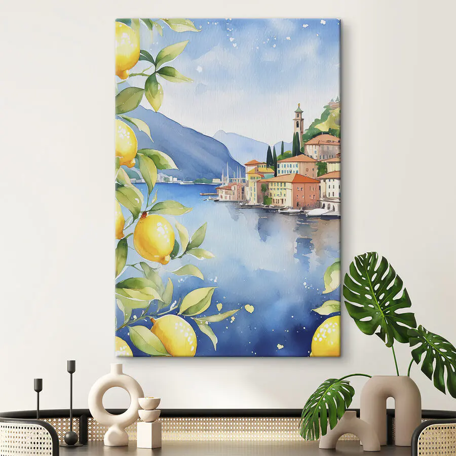 Stellen Sie sich einen sonnigen Nachmittag an einem ruhigen See vor, an dem der süße Duft frischer Zitronen durch die Luft weht. Dieser Leinwanddruck “Lemon Grove by the Lake” fängt diese verträumte Stimmung perfekt ein. Mit seinen sanften Aquarellfarben und dem charmanten Dorf am See bringt es einen Hauch von Wärme und Fröhlichkeit in jeden Raum. Stellen Sie es sich in einer gemütlichen Küche oder einem hellen Wohnraum vor, wo es Freude und Gespräche auslöst. Und jedes Mal, wenn jemand vorbeikommt, ist es wie eine kleine Flucht. Wer würde nicht gerne in diese heitere, zitronige Atmosphäre eintauchen? Ein Blick genügt, und die Sonne scheint und lächelt.